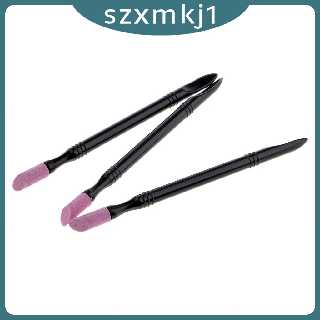 Description: Nail Art Cuticle Remover Pusher Quartz Stone Scrub Pen Dead Skin Removal Manicure Stick (3 pieces) Material: quartz stone and plastic handle Length: approx. 11.7 cm / 4.61 inch Head Size: approx. 1.6 cm / 0.63 inch Usage: Trim and polish nail Package Includes: 3x Nail Cuticle Remover pen