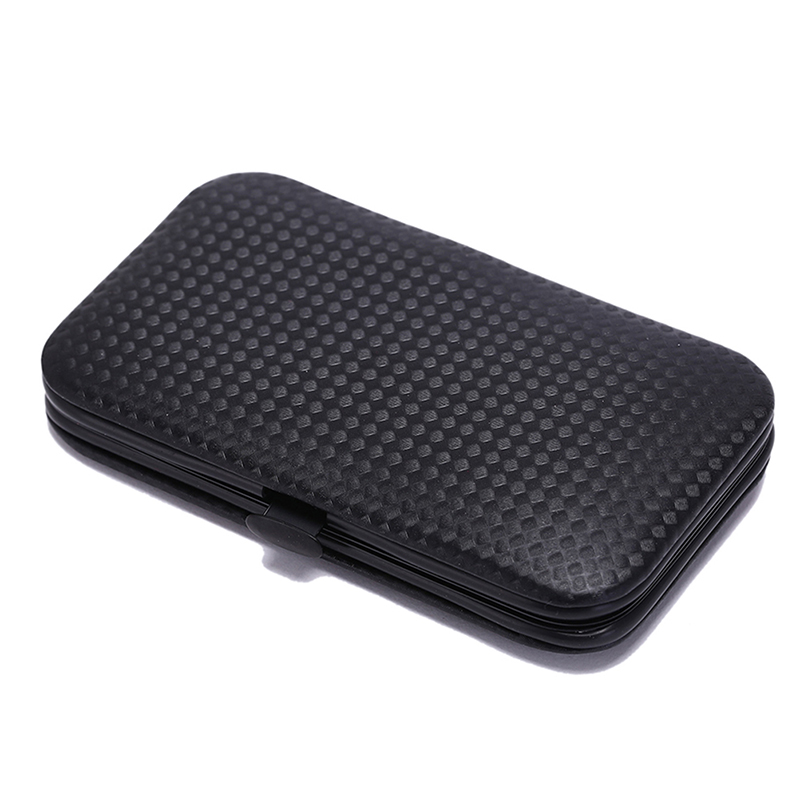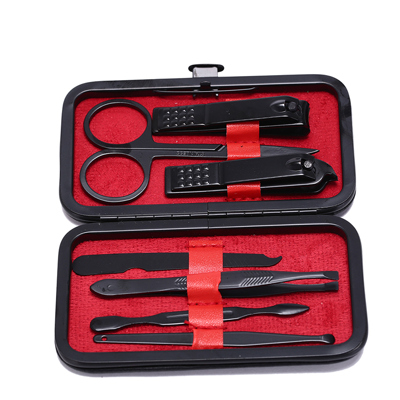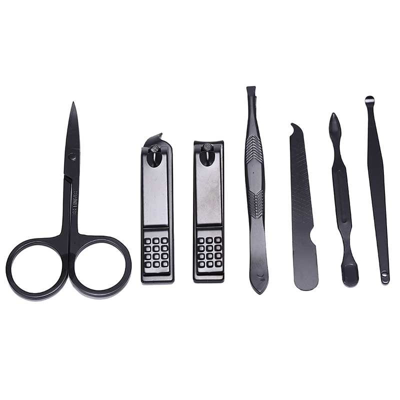 Type:nail kit Material:stainless steel Color:black Weight:115g Size:11cm x 6.3cm x 1.2cm Package include:7pcs/set nail kits