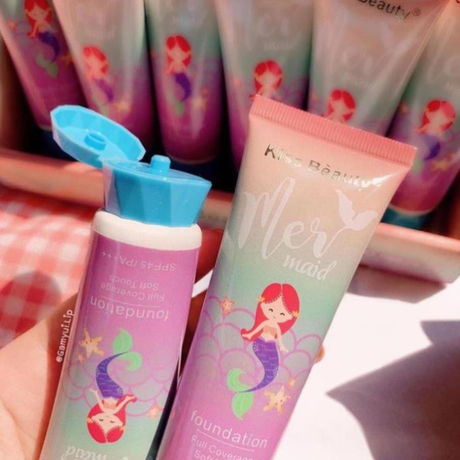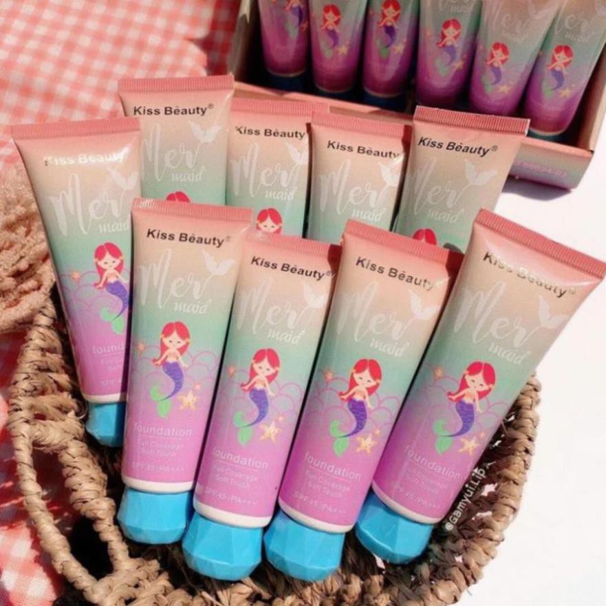 - Tuýp kem lót nền nàng tiên cá Kiss Beauty -Xinh gì mà xinh dữ vậy nè. Tính năng cũng ko thua gì các phiên bản trước đâu nhé Kem nền Kiss Beauty là bước đệm kem lót trong trang điểm, giúp da đều màu mềm mịn và bắt phấn. Với dưỡng chất vitamin E & D-panthenol giúp da chống nhăn & chống lão hóa làm cho da mịn màng thật tự nhiên. Có thành phần chống nắng cao SPF 45 PA+++ giúp bảo vệ da khỏi ánh nắng mặt trời. BB kiss beauty phù hợp với mọi loại da.