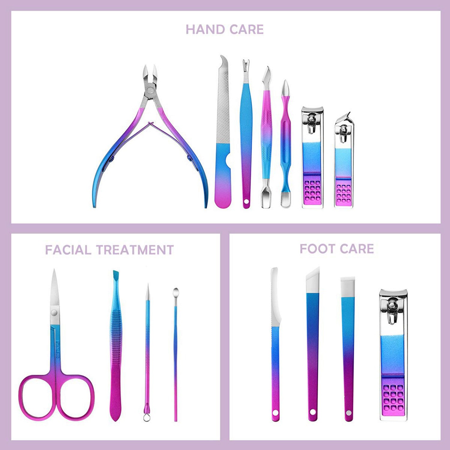 STANDOUT DURABILITY: This clipper set is made of premium material, the blade are made of high quality stainless steel. Just use in a proper manner, this tool will definitely last you years. FAST & EASY TO USE: The sharp blades of this clippers excellently help you to cut your redundant s. The angled Blade is clean and precise. Really easy for you to use without any pressure. PORTABLE & LIGHTWEIGHT: Tools with different tools come with a portable synthetic case that is easily opened. It is also very lightweight so you can carry it with you in your bag everyday or pack it with you when you go traveling. The best gift: our manicure tool comes with a beautiful packaging design. stylish and elegant, is a good gift. Manicure Set (15 Pieces): Professional Manicure Kit Contains and toe tools for three functions, including hand care, facial care, and foot care. This Manicure Pedicure set has every thing you need. 100% Stainless Steel High Quality Tools: Manicure and Pedicure tools are made of professional grade Stainless Steel, which allows for safe sterilization, prevents corrosion and minimize risk of infections. Portable: That is easily opened with a push of a button. It is also very lightweight so you can carry it with you in your bag everyday or pack it with you when you go traveling. Name: Stainless Steel Scissors Set Kit Item Type: Manicure Toes el Number: Clipper Set Feature: Durable and practical, easy to carry; Function: Manicure, Pedicure Applicable: all people Colour:As shown Material:stainless steel Package Contents: 1x large flat clippers 1x flat clippers 1x diagonal clippers 1x eyebrow scissors 1x file 1x eyebrow clip 1x double head pick 1x ear pick 1x 1x dead skin push 1x acne 1x dead skin pliers 1x oblique pedicure 1x positive pedicure 1x scraper Only the above package content, other products are not included. Note: Light shooting and different displays may cause the color of the item in the picture a little different from the real thing. The measurement allowed error is +/- 1-3cm.