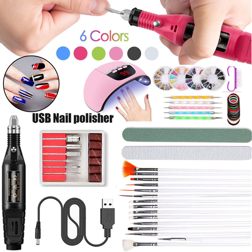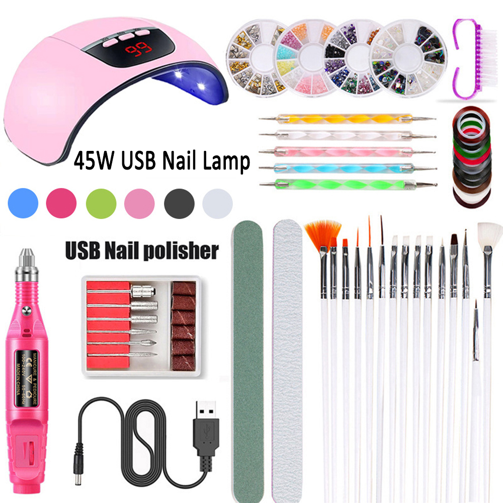 <div><p>Color: Pink,White,Black,Blue,Rose,Green LED QTY: 15pcs Item Type: Manicure Tool Set Timer Setting: 30sec, 60sec, 99ec Material: Plastic + Metal + Electronic Components Quantity: 1 Set Nail Dryer Lamp Power: 36W Package Includes: 1 x 45W Nail Dryer Lamp 1 x Nail Buffer 1 x Nail File 5 x Nail Dotting Pens 15 x Nail Painting Brushes 10 x Rolls of Nail Art Strip 1 x Nail Dust Brush 4 x Box of Nail Tips Decoration 1 x Nail Drill Machine 6 x Drill Bits 6 x Sand Band 1 x Charge Cable Features: This kit includes all tools that your need for a perfect nail art 45W UV LED nail lamp for nail gel curing Nail drill machine with 6 drill bits used to shape, grind and polish nails 15pcs nail brushes to draw exquisite pattern on nail tips 4 set of rhinestone and10pcs stickers for nail tip ornament Comes with buffer and file for nail polishing Perfect for professional salon, manicurist and home use Note: Please allow 1-3cm (0.4-1.18") difference due to manual measurement and slight color variation for different display setting. Thank you for your understanding, nice day!</p></div>
