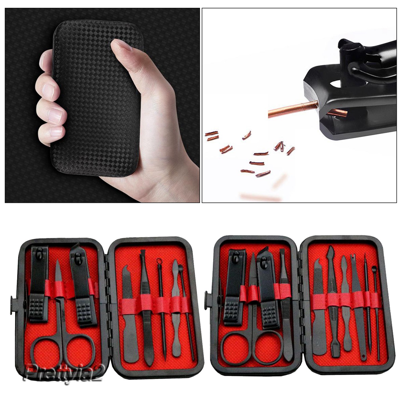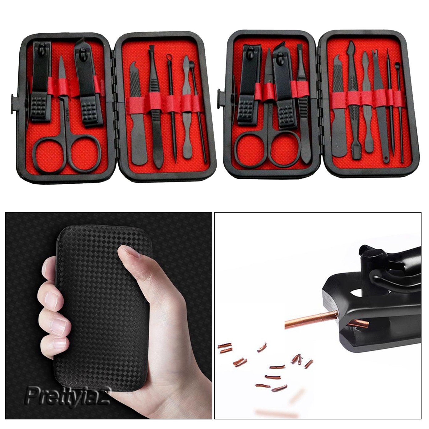 Description: 8Pcs/10Pcs Set(Optional): Manicure Pedicure Set Kit contains including tweezers, a cuticle clipper, nail clipper, nail file, ear pick, cuticle pusher and so on. Small size and lightweight, you can take it anywhere, great for travel and daily life. Stainless steel with sharp blades, high hardness and good wear resistance, are durable and not rusty. The manicure set has so many functions including hand care, foot care and facial care that it can meet the various care needs in your daily life. Portable: 8Pcs/10Pcs Set (Optional) Tools are neatly attached in a PU box and can be easily opened at the push of a button. Specification: Material: stainless steel Size: 15x10cm/5.9x3.9 inch Package Includes: 1x Nail Clippers Manicure Set Pedicure Kit