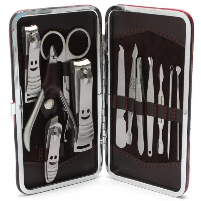 Bộ sản phẩm bao gồm: Bấm móng loại lớn, bấm móng loại nhỏ, kềm cắt da, nhíp, kéo tỉa lông mày, giũa móng, móc tai, 1 dụng cụ làm sạch da, cây nặn mụn, 2 cây lấy khóe. Sản phẩm làm bằng kim loại nhỏ, gọn, sử dụng êm tay, có thể mang theo mọi lúc, mọi nơi. Giúp bạn tự chăm sóc móng tại nhà.
