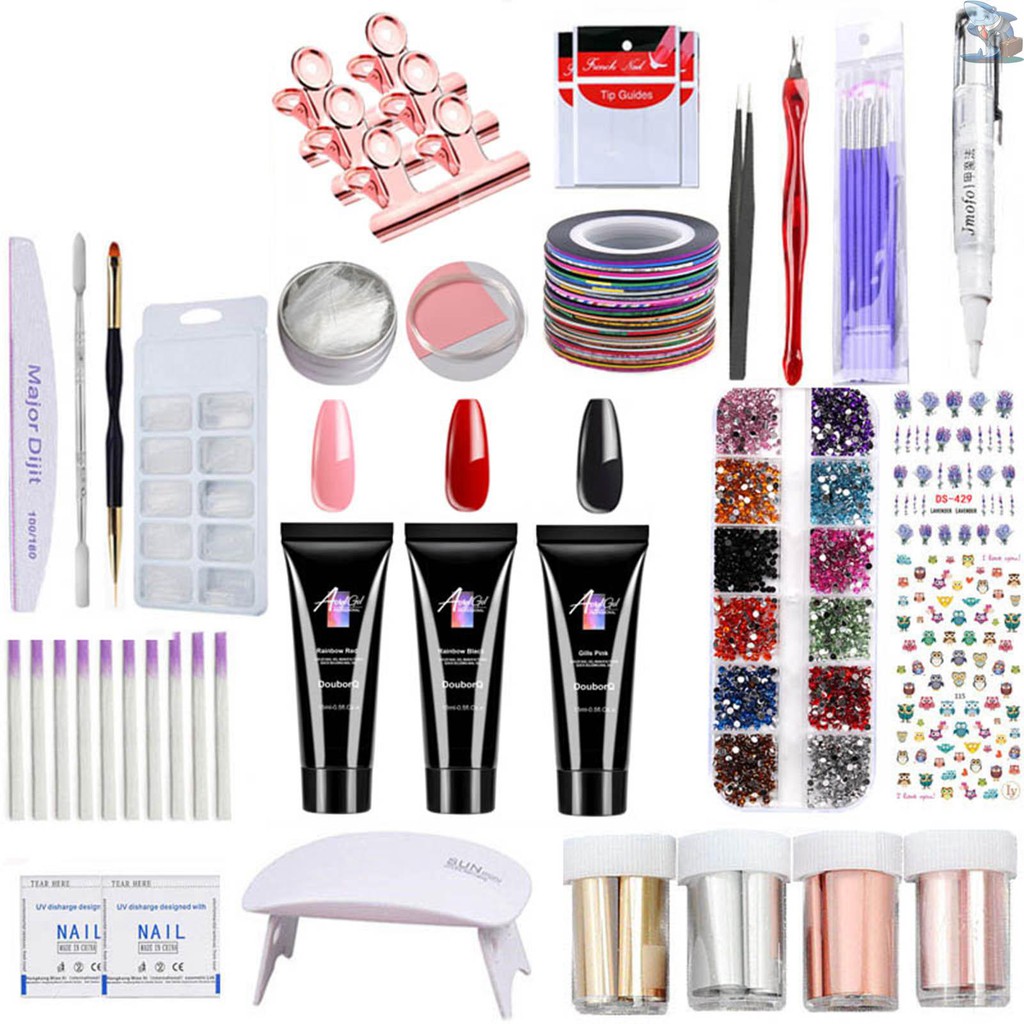 The manicure set is complete for nail extension, including nail glue, nail lamp, nail decoration and other tools. You can use it for professional or home manicure. Features: The dazzling rhinestones, nail sticker and nail foil are beautiful nail decoration. The uv lamp makes gel quick-dry and keeps natural color. The glass fiber, t-ip guides and crystal molds help to build extended nails. The nail glue is used for quick building, making nails transparent and glossy. Suitable for home diy or professional salon use. Specifications: Material: Resin Package Weight: 390g / 13.76ounces Package Size: 90 * 34 * 34mm / 3.54 * 1.34 * 1.34in Packing List: 10 * 55mm Glass Fiber 1 * Box of 30mm Glass Fiber 2-3g 1 * Black Straight Tweezers 1 * Nail File 6 * 31mm Rose G-old Clamp 1 * 500mm Glass Fiber 1 * Box of Rhinestones (12 colors) 2 * Sheets of Nail Sticker 4 * Bottles of Nail Foil 1 * UV Lamp 3 * Bag of T-ip Guides 2 * Nail Towel 1 * Nail Cuticle Pusher 1 * Crystal Pen 3 * Bottles of Fiber Builder Gel 1 * Set of Striping Tape 1 * Dead Skin Pusher 1 * Set of Pen Brush (7pcs) 1 * Softening Pen 1 * Box of Nail Molds #nailgelset #nailextension #Health&Beauty #Nails #UVlamp #NailTools #nailart #nailextensionset #UVGel