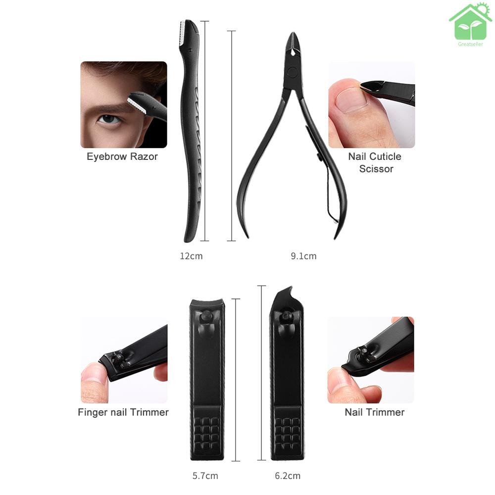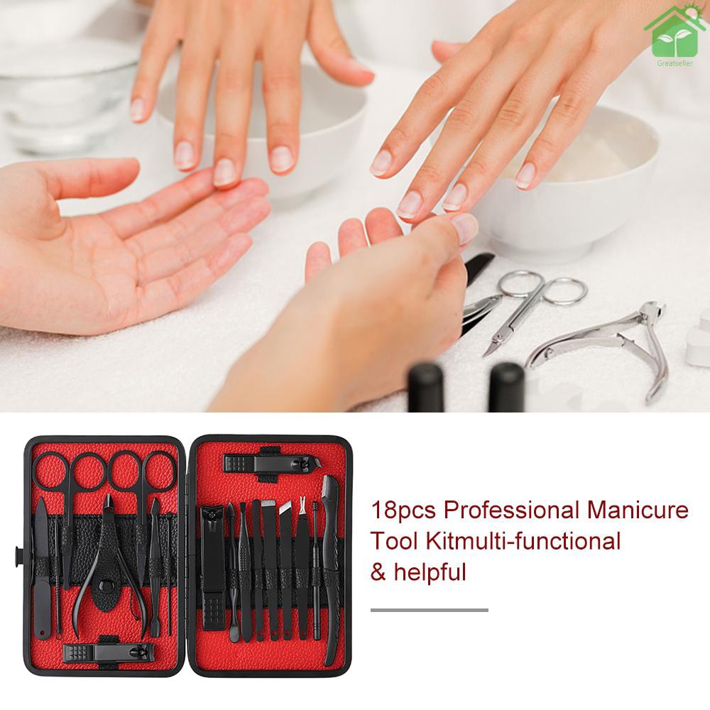 Thank you for your support, please read the following carefully before purchasing:Description: 18-In-1 manicure & pedicure tools kit, nail clippers, cuticle trimmers, cuticle pusher, nail file, dead skin fork, eyebrow tweezers, eyebrow scissors, acne needle, ear pick and so on are included. Come and have a look. You will find it very helpful for your daily hand care, facial care, ear care and foot care. Features: A great combination, 18pcs of different care tools are included, meeting all your basic need for hand care, facial care, ear care and foot care. All the tools are made of top grade metal material, which will never rust, extremely sturdy and durable, can be used for a long time. A PU storage case is included, stylish and elegant, nice for keeping all your tools organized, easy for you to get them for next use. A must-have item for daily use or travel use, also a great gift choice for your family, friends or colleagues. A professional and multi-functional tool kit that worth buying, you will find it truly helpful and effective. Specifications: Type: Manicure Tool Color: Black; Red Material: Carbon Steel; Stainless Steel; PU Quantity: 18pcs Item Size: Approx. 15.5 * 10.5 * 1.2cm / 6.1 * 4.13 * 0.17in Package Size: Approx. 15.5 * 11.2 * 2.5cm / 6.1 * 4.41 * 0.98in (L * W * H) Package Weight: Approx. 311g / 10.97oz Package List: 1 * Manicure Tool Kit 1 * PU Bag