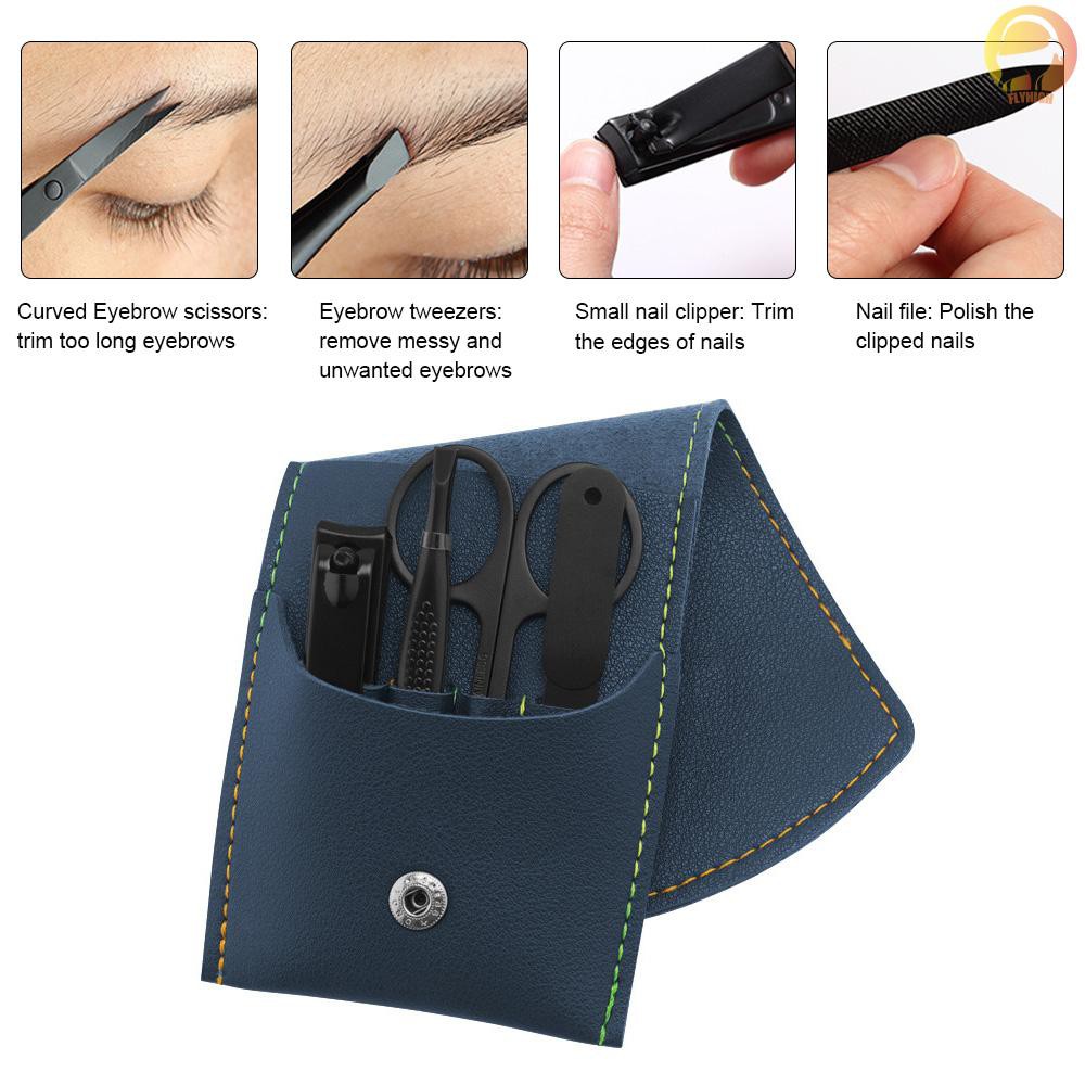 F & H 4pcs/set Nail Cutter Set Nail Clipper Black Stainless Steel Scissors Eyebrow Tweezers Nail Cutting Trimmer Nail File Leather Bag Features: Stainless Steel, Easy to clean and won't rust easily. Help you cut and smoother nail edge or surface. With a storage bag, easier to organize and carry. Perfect for both professional salon and home use. Different tools can meet your various demands include nail Clipper, Beauty scissor, Tweezers, Nail File, storage bag. Specifications: Tools Material: Stainless Steel Case Material: PU Leather Tools Color: Back Case Color: Grey/Brown/Dark blue Qty: 4Pcs/Set Package Size: 13.8 * 11 * 2.3cm / 5.4 * 4.3 * 0.9in Package Weight: 74g / 2.6oz Package List: 1 * Nail Cutter Set