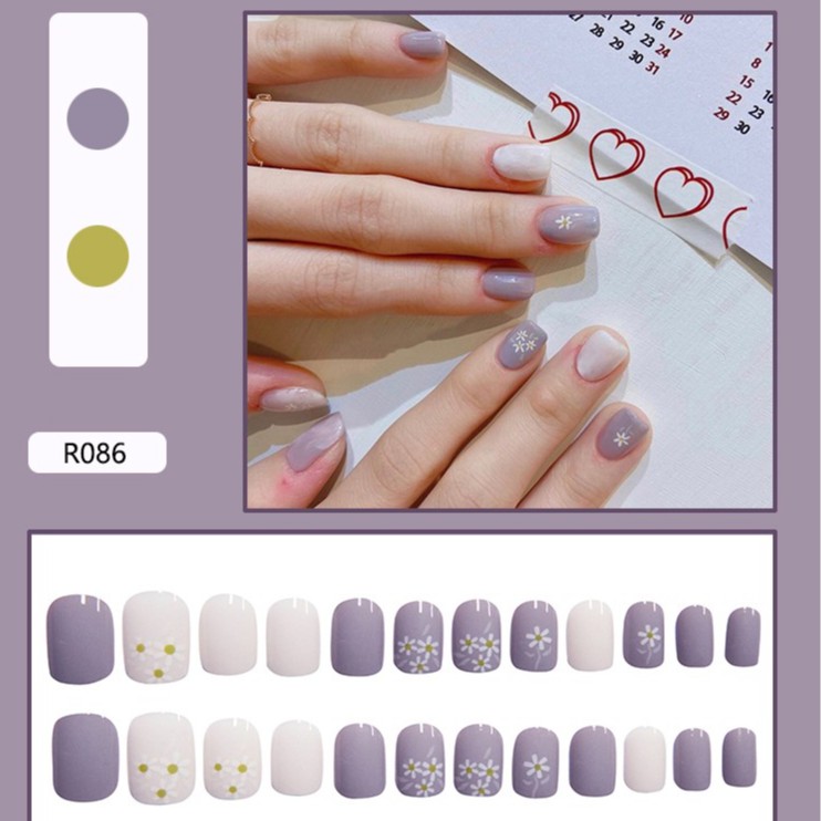 Sản phẩm Set 24 Móng Tay Giả Màu Tím Chấm Bi Xinh Xắn hiện đang được bán tại Shopee.