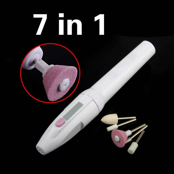 ❤❤ Welcome to sllxg! All goods in the store are shipped from China. The transportation time usually takes 1-147 weeks. If you have any questions, please ask the customer service sister, we hope to bring you beautiful! ✿✿ Enjoy your manicure at home! One button operation. High speed rotation, powerful enough to trim and shape tough acrylics and toenails. Gentle enough to work on cuticles and weak or splitting nails. Powered by 2 x AA batteries (not included). With five crafted nail heads. Compact and lightweight. Decent apperance. Functions of Five Attachments: Metal Cone: Removes dead skin, corns and calluses; Grinding Barrel: Flatten and smooth extra thi nails and rippled surfaces; Small Grinding Cone: Carves into corners and hard to reach spots; Soft Felt Cone: Polishes nails to a healthy shine, and push ba cuticles and stimulate nail bed circulation for increased nail growth; Flat Ey Head: Professionally shapes nails and finishes them to a smooth gentle edge. Length: 17cm
