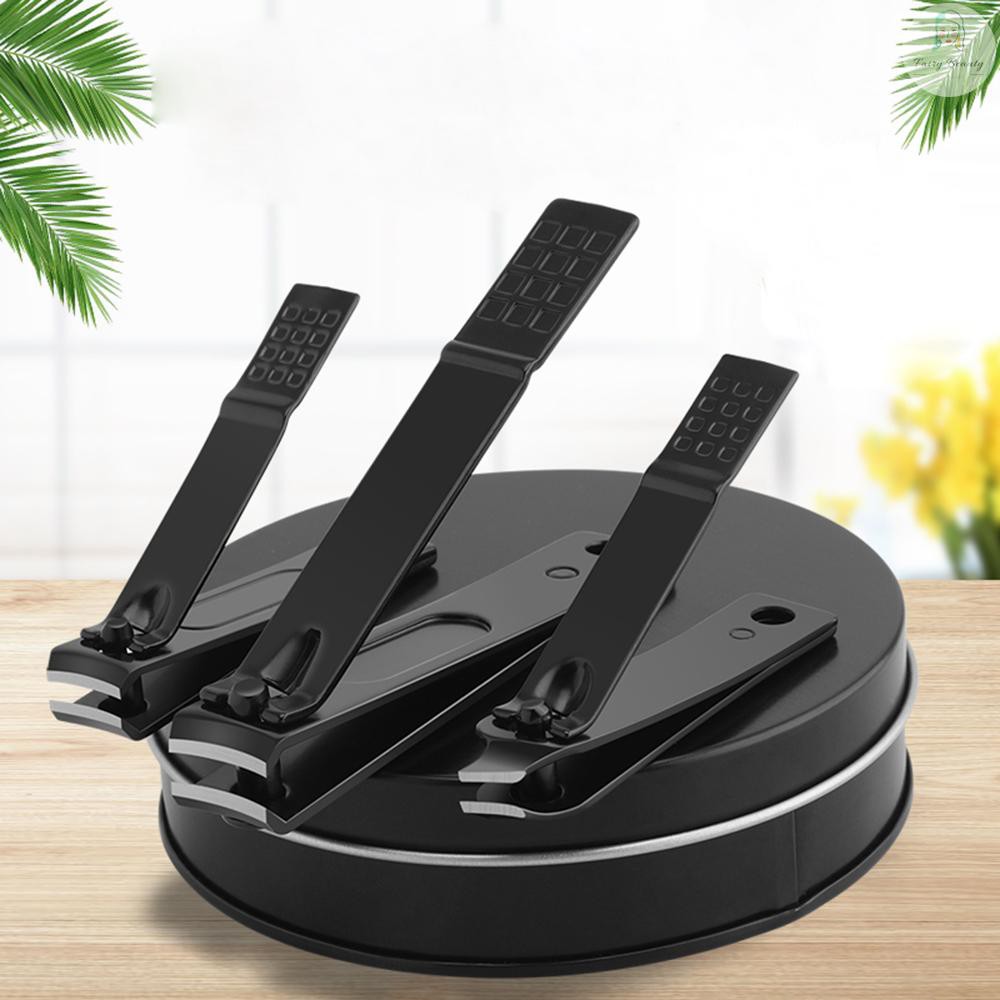Features: 3Pcs in one box: Three different size for different using and Prevention of cross infection. 0.02mm Dislocation cutting edge: Sharp enough to save effort in trimming. Curved blade: Trim round and smooth nails for a better appearance. 360° Rotation: Not easy to peel off, suitable for multi-angle trimming. Non-slip handle: Use less effort trim. Round storage box: Stylish and comfortable feeling. Specifications: Type: Nail Clipper Set Material: Stainless steel, Carbon steel(Black only) Color: Black, green, dark gray and light gray (optional) Case Color: Black Quantity: 3Pcs/Set Package Size: 9.3 * 9.3 * 2.5cm / 3.66 * 3.66 * 0.98in Package Weight: 132g / 4.65oz Package List: 1 * Nail Clipper Set