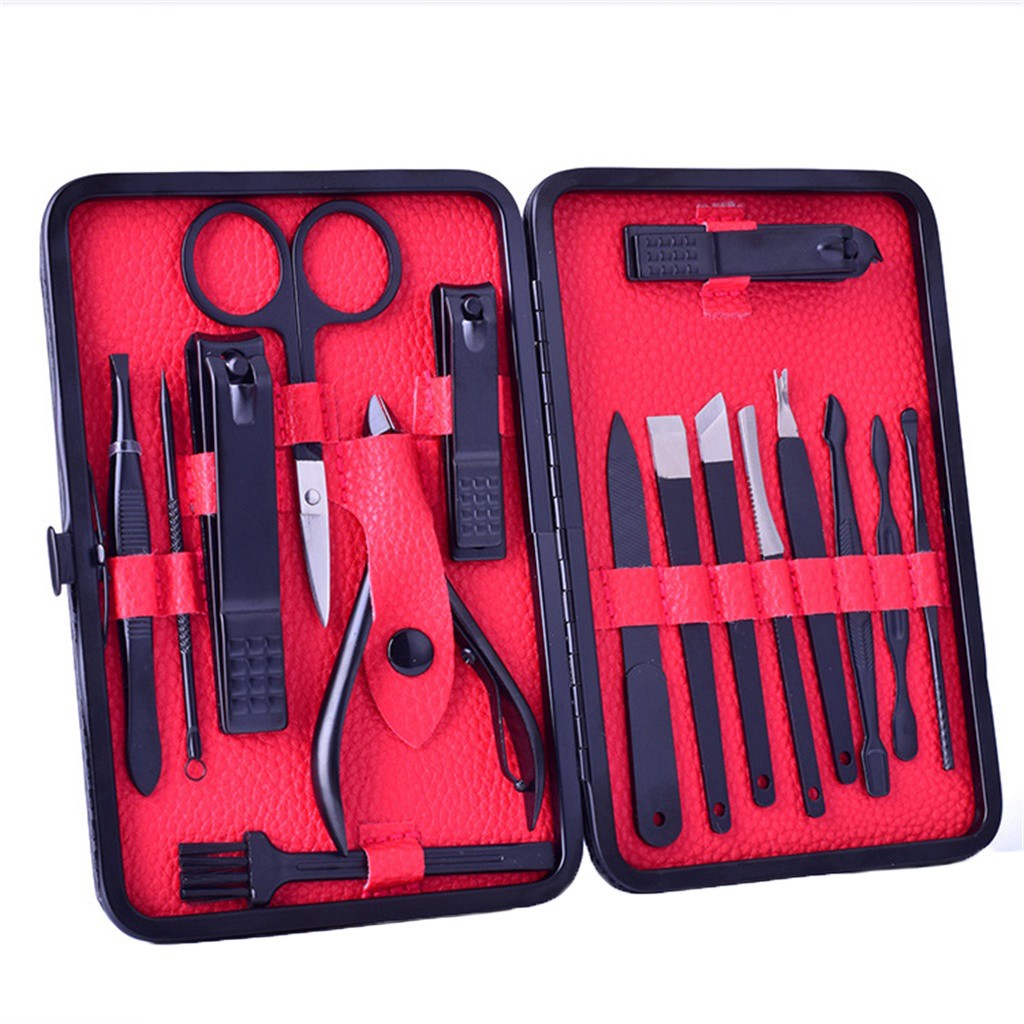 Manicure Pedicure Set 15 Piece Stainless Steel Nail & Professional Grooming Kit About the Product: 1.16 PIECES MANICURE SET: Contains 16 pieces nail and toenail tools for hands,foot and face care. this Manicure Pedicure set has every thing you need. 2.100% Stainless Steel High quality Tools: Our manicure and pedicure tools are made of professional surgical grade Stainless Steel to allow Safe Sterilization, Prevent Corrosion and Minimize Risk of Infections. -PORTABLE & LIGHTWEIGHT: This mens manicure set comes with a portable synthetic leather case that is easily opened with a push of a button. It is also very lightweight so you can carry it with you in your bag everyday or pack it with you when you go traveling. -Best Gift: The Set comes in an intricately designed case that is both stylish and functional. This case is easy to open as well, all that you have to do is press the button and it opens up quickly. Perfect as a gift for men and women!Good for families and friends. -How to maintain manicure set and keep a good nail care habit: Put the manicure set back to the package and in a dry environment when don’t use. Good maintenance, blade will be still sharp and don’t rust after several years. For health, It is better to use your own nail care kit separately as separate tools for fingers and toes help avoid the spread of fungal infections.. Specifications: -Material: Stainless steel -Weight: 290g -Leather Case Size:153x107x30mm Includes: 16x Stainless Steel kit 1 x Leather Case