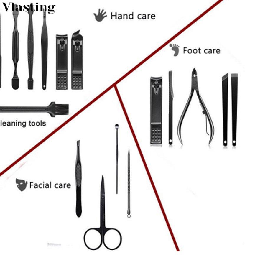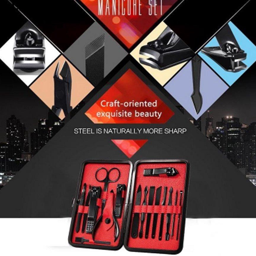VL⬆16 In 1 Manicure Pedicure Set Nail Clippers Stainless Steel Features: 16pcs manicure set: face care tools (Eyebrow Scissors, peeling Knife, 4ar Pick, 4 yebrow Tweezer, Blackhead and Acne Needle); Manicure Kit (nail file, dead skin fork, cuticle knife, bevel nail clippers, smaller nail clippers); Pedicure Set (toenail nipper, straight pedicure knife, diagonal pedicure knife, scraping knife, larger nail clipper) stainless steel material: all made of 100% stainless steel with matt craft and great craftsmanship, durable fashion and corrosion resistant. Compact and easy to carry: Come with a luxurious portable leather case. Just in your business bag or travel bag and take it anywhere. perfect gift choice: Very attractive case design and manicure set. the case is very easy to open with a push of a button. Suitable for women and men. Great gift for family or friends. Specification: 16 in 1: 2 * Nail clipper: Trim finger nails 1 * large nail clippers: Trim hard and thick toenails 1 * Cuticle Nipper: Trim cuticles 1 * Nail file: Make nails rounded, smooth 1 * Dead Skin Fork: Trim suface, obsess, callus, dead skin, etc 1 * Tweezer: pluck eyebrow and ingrown hairs 1 * scissors: trim eyebrow 1 * tapered / Blunt push-type broach: trim nail keratin and remove scraping nail polish 1 * Nail Cleaning Knife: Clean dirt in nails 1 * ear Pick: Clean ear 1 * Acne needle: Remove Blackhead / Acne 1 * Flat Callus Remover: Cleaning deak skin on foot 1 * Olique Callus Remover: Cleaning deak skin on foot 1 * Zigzag Callus Remover: Cleaning deak skin on foot