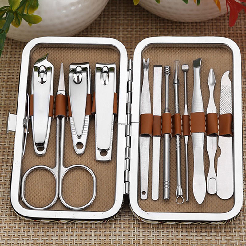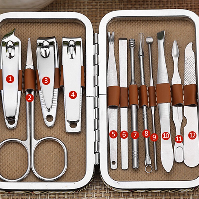 Description: 100% brand new and high quality Material: Stainless Steel Size: 10.6*6cm Quantity: 1 set(12pcs) Color: as the picture shows Simple and elegant purse 12pcs manicure set. Best quality as personal manicure \/ nail set. Great for travel and daily life. Inconceivable price to have this wonderful set. Great for traveling use, gifts, favors & more.