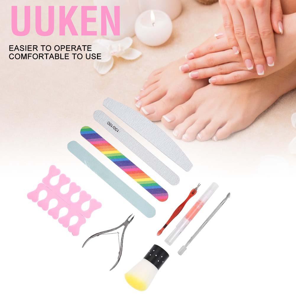 ❤Welcome to my store,remember collect coupons before placing an order. ❀Ready Stock ❀High quality ❀Best price ❀Brand new 100% ☞Tips: Follow shop/ Click“Like”Item: we will give you a special gift ✉Sent me Screenshot and Message on your order : "Free Gift",if not will Miss Attach Photos in 5 star comment: We will give you special next time. ➷ Welcome wholesale retailers to negotiate long-term business with us! ———————— ♥ Product Introduction ♥ ————————— Feature: -Ergonomic designs makes it easier to operate and comfortable to use. -Including dead skin scissors, forks, pusher, sanding block, finger separator, etc. -Meeting daily needs for nail care, simple operation and convenient carrying. -Suitable for use in nail salons or families. Can be used for both natural and artificial nails. -Makes your manicure more effortless, easy to operate without damaging your nails. Specification: Condition: 100% Brand New Item Type: Nail Art Set Material: Alloy, Sponge Quantity: 10pcs Suitable: for Home, nail salon, etc. Package List: 1 x Dead Skin Scissors 1 x Dead Skin Fork 1 x Pusher 1 x Round Nail File 1 x Colorful Nail File 1 x Arc Nail File 1 x Polishing Strip 1 x Pen 1 x Pair of Finger Separator 1 x Dust Cleaning Brush