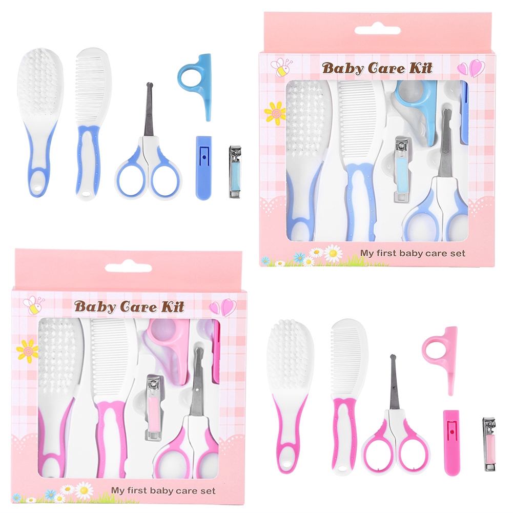 Features: Essential 6 pieces cover your needs, including a baby hair brush, hair comb, nail clippers, nail clipper cover, nail scissors, nail scissors cover. Nail clippers and scissors with arc head are designed for infants and children to prevent accidental injury. Baby hair comb and brush help to massage the head and do baby's hair nicely. Scissor handle cover and nail clipper cover protect baby's hands from fatigue. Perfect portable kit to keep in your baby's nursery and bring with it during travels. It's also a wonderful gift for a new or experienced parents. Specifications: Condition: 100% Brand New Material: Plastic, Metal Color: Pink, Blue(optional) Package Included: 1 * Baby Hair Brush 1 * Baby Hair Comb 1 * Baby Nail Scissors 1 * Baby Nail Scissors Handle Cover 1 * Baby Nail Clipper 1 * Baby Nail Clipper Cover