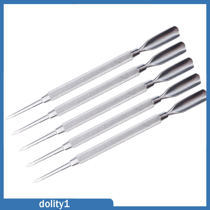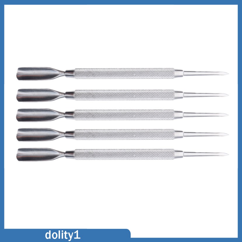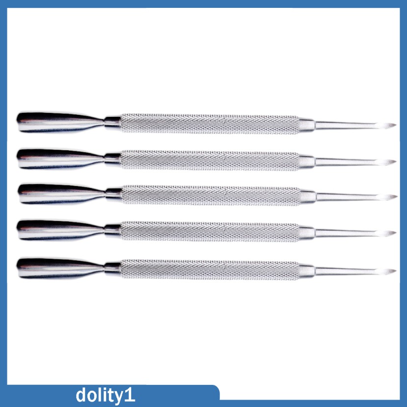Description: 100% stainless steel materials is rust-proof and tarnish-resistant, as well as easy to sterilize. 2-in-1 manicure maintenance heads, dual-end pusher for pushing and cutting nail cuticle. Perfect Dead skin scrapper/cuticle pusher/nail cleaner, manicure and pedicure tools. Unique shape, easy to handle, comfortable and painless use. Suitable for professional salon use or home use. Specification: Length: Approx. 13.5 cm/5.31 inch Package Includes: 5 Pieces Cuticle Pusher
