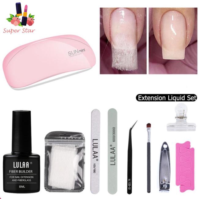 Description: Item type:Manicure Set Color classification: transparent Color: pink light, white light Texture: clear and long Net content: 8ml Features: nail lengthening Ingredients: resin Packing list: 1* lamp, 2*Cotton, 1*Nail Clips, 1*Fiberglass Gel, 10*Fiber towel, 1*Scissors, 1*Tweezer, 1*Brush, 1*Nail File Notes: 1-2cm error might exist due to manual measurements, please kindly understand. The colors deviation might differ due to different monitor settings.