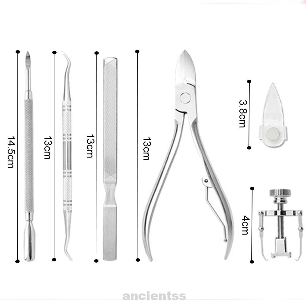 Features: For Ingrown Toenail: Pedicure set provide a great care for your nails to keep nail healthy. Material: Made of stainless steel and metal, easy to use, rust-proof, corrosion-resistant. Prevent Further Infection: Can clean the dirt under toenail, keep nails neatly and cleaning. Corrector: The sides of the corrector can be adjustable to adapt different nail. Nail Clipper: Can help you do toe removal, cut ingrown toenails or thick nail. Applicable Usage: Suitable for home, salon, foot care center and so on. Specifications: Color: Silver Material: Metal+ Stainless Steel For Eagle nose pliers size: About 14.5 cm Armor trimmer size: About 13 cm Double-sided file size: About 13 cm Steel push size: About 13 cm Orthotics size: About 3.8 cm Radiating cover size: About 4 cm Package Included: 1 pc* Eagle nose pliers 1 pc* Armor trimmer 1 pc* Double-sided file 1 pc* Steel push 1 pc* Orthotics 1 pc* Radiating cover Note: -Due to the light and screen difference, the item's color may be slightly different from the pictures. -Please allow 0.5-2 cm differences due to manual measurement.