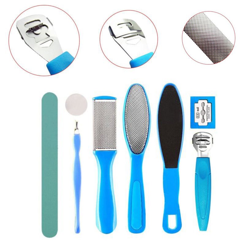 Specification: Brand new Material: stainless steel Size: As picture shows Quantity: 8pcs/set The professional foot callus remover shaver has a long and non-slippy easy grip handle, ideal for pedicures and regular maintenance The blade can be removed easily for cleaning Gently and effectively remove calluses and hardened skin For best results, soak feet for 2-3 minutes in warm soapy water to soften skin before using The foot rasp file quickly reduces and smoothes calluses and also helps prevent build up of hard skin and hard skin Callus Package include: 1 set(8pcs) x Foot Pedicure Tool Note: Due to the hand measurement, there have size error about 1-5mm Item color displayed in photos may be showing slightly different on your computer monitor since monitors are not calibrated same