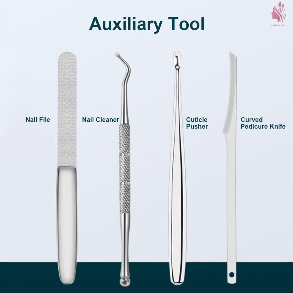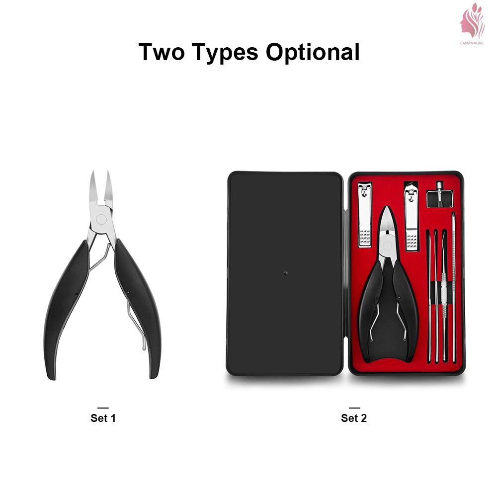 ♥welcome to bananagirl♥.Stainless Steel Manicure Set Pedicure Scissors Cuticle Cutter Clipper Nail File Toenail Corrector Description: This set of stainless-steel manicure/pedicure set is of great use for your daily personal care. It includes ingrown toenail clipper, toenail clipper, fingernail clipper, nail file, ingrown toenail corrector, cuticle pusher, nail cleaner, curved pedicure knife. Features: It includes ingrown toenail clipper, toenail clipper, fingernail clipper, nail file, ingrown toenail corrector, cuticle pusher, nail cleaner, curved pedicure knife. This nail nipper set was designed to easily clip nails of all sizes making it the best toe nail clippers for thick nail ingrown toenails and they can assist in toenail fungus treatment as needed. The ingrown nail corrector adopts lever mechanics to change the angle of nail growth, design of concave non-slip handle makes it more easy and convenient to use and it is also easy to clean. Made of quality stainless steel and never rust. Nail clippers, cuticle remover and nail scissors are nicely sharped and comfortable to hold. The elegant case is made of high-quality fabric and PU leather with black and red interior. It is a very good and compact set of fingernail tools in a good-looking case for home and travel. Specifications: Name: Manicure Set Material: Stainless-steel Color: Multicolor Package Size:17.5 * 10 * 2.5cm / 6.88 * 3.93 * 0.98in Package Weight: 150g / 5.29oz (Set1); 205g / 7.23oz (Set2) Package List: Set1: 1 * Ingrown Toenail Clipper Set 2: 1 * Ingrown Toenail Clipper 1 * Toenail Clipper 1 * Fingernail Clipper 1 * Nail File 1 * Ingrown Toenail Corrector 1 * Cuticle Pusher 1 * Nail Cleaner 1 * Curved Pedicure Knife