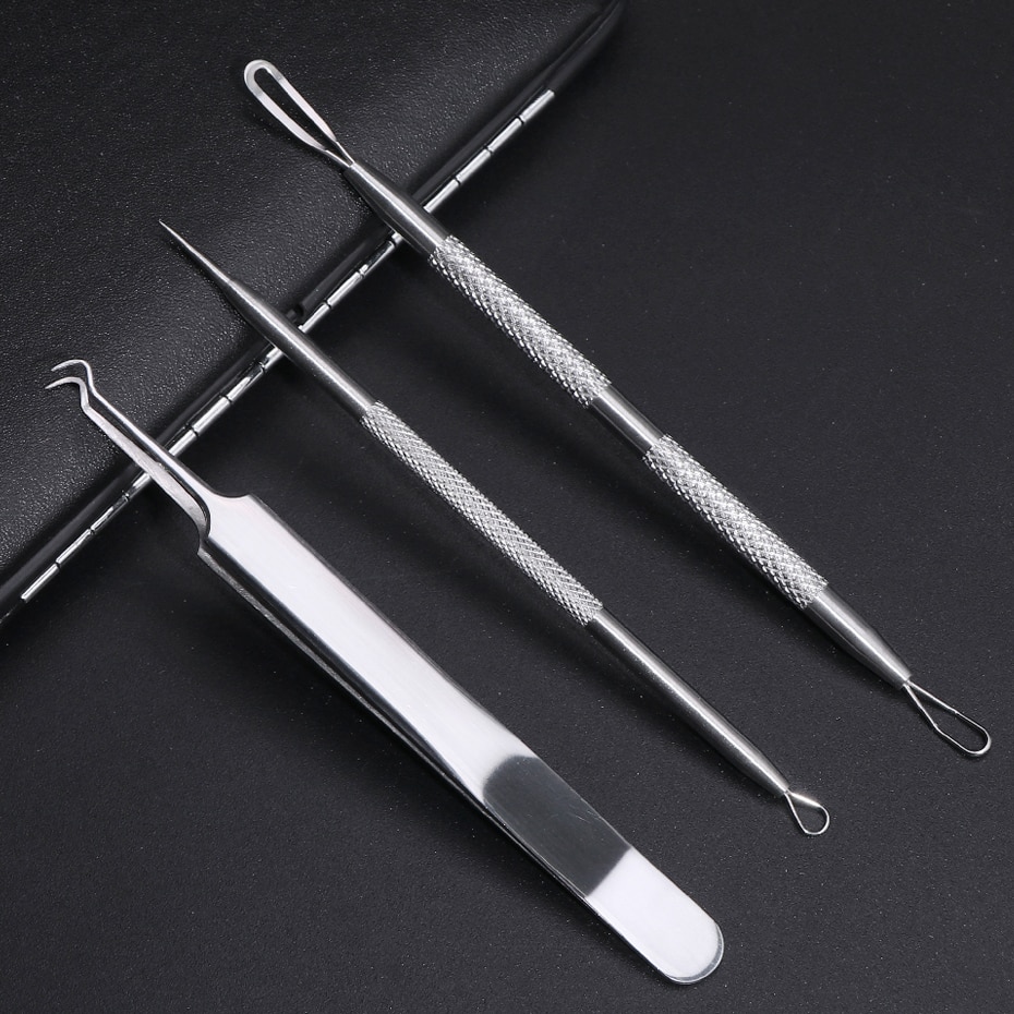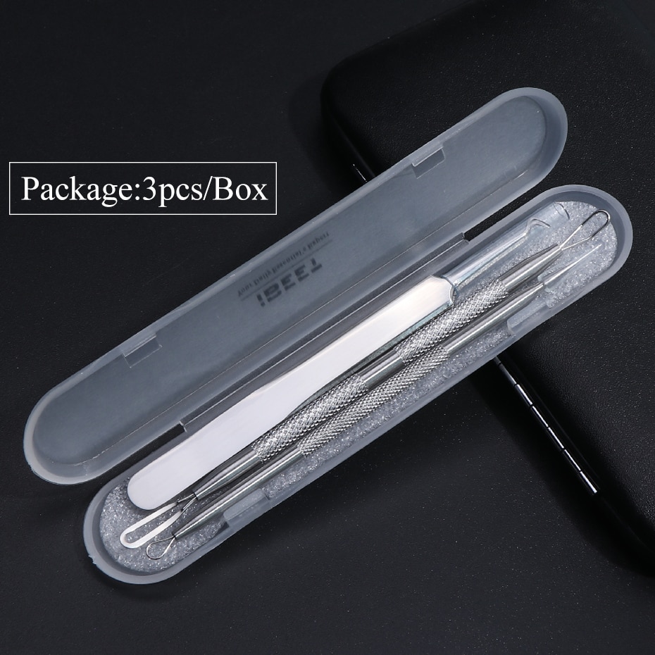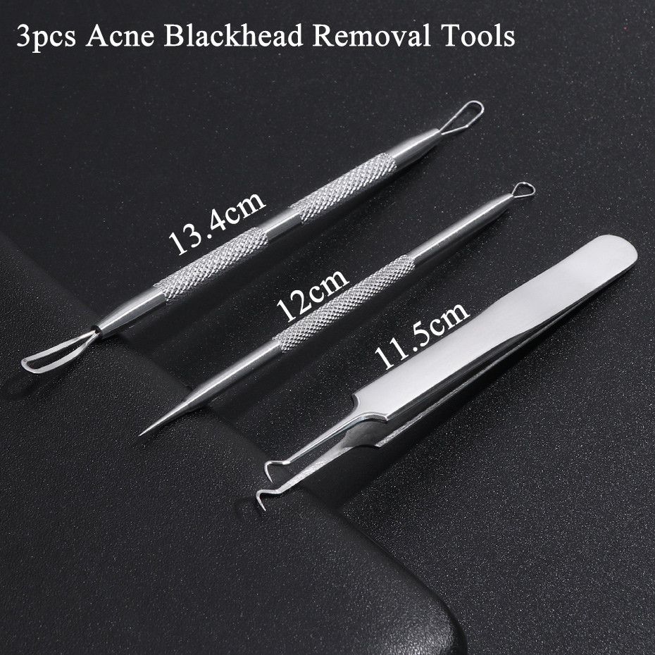 Origin: CN(Origin) Size: 11.5cm,12cm,13.4cm Material: Stainless Steel Item Type: Makeup Tool Kit Model Number: MP01 Quantity: 3pcs/Box Designs: Stainless Steel Extractor Blackhead Remover Needles Items: Acne Pimple Blemish Treatments Face Skin Care Beauty Tools Color: Professional Facial Skin Care Tools For Faces Details: Blackhead Comedone Acne Pimple Belmish Extractor Function 1: Vacuum Blackhead Remover Tool Spoon for Face Skin Care Tool Function 2: Black dots cleaning remover tools Function 3: Pimple Spot Comedone Extractor Cleanser Features 1: Needles For Squeezing Acne Tools Spoon for Face Cleaning Features 2: Comedone Extractor Pore Cleaner Features 3: Face Cleaning , Pore Cleaner , Acne Tweezers