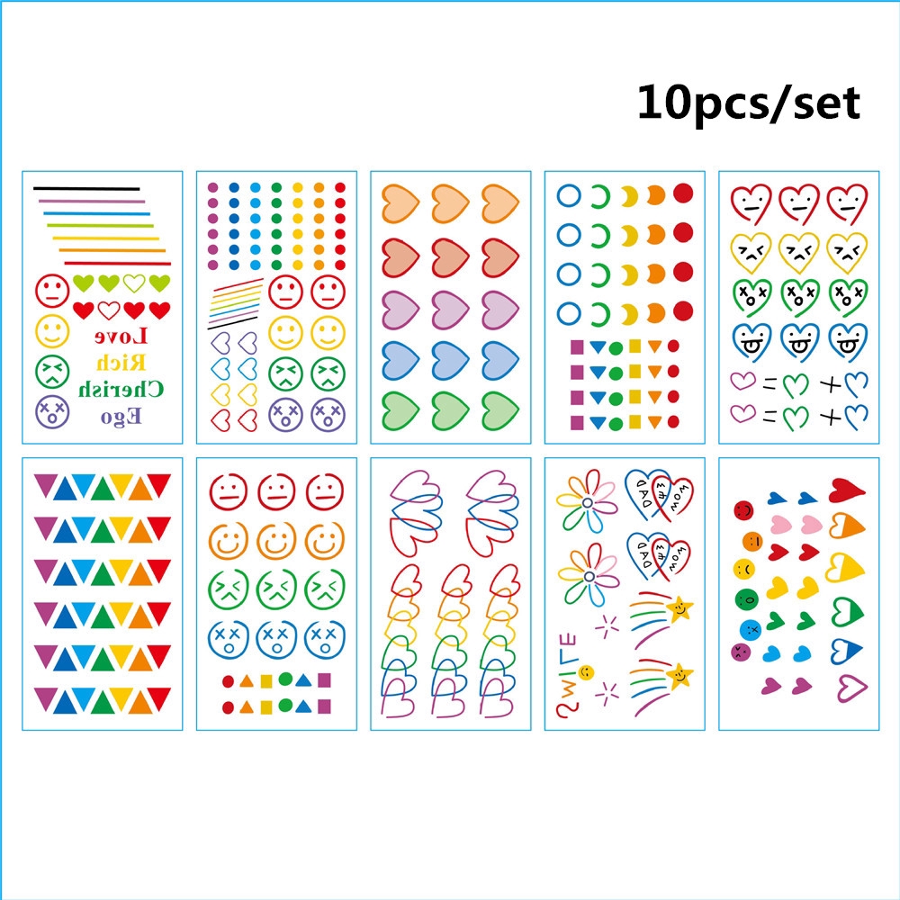Sản phẩm Set 10 Miếng Dán Hình Xăm Tạm Thời Hoạ Tiết Mặt Cười Phong Cách Hàn Quốc Xinh Xắn Đáng Yêu hiện đang được bán tại Shopee.