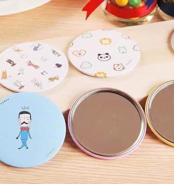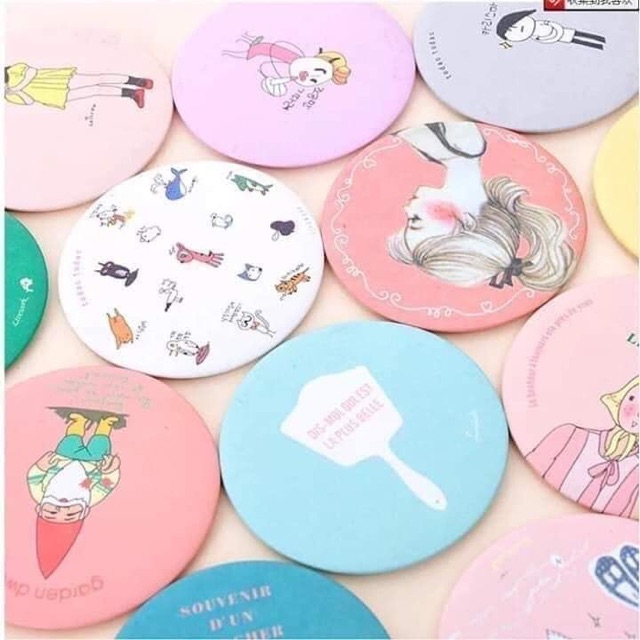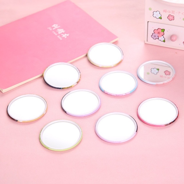 Sản phẩm: Gương mini nhiều hình kute - Kích thước: Đường kính dao động 6,5cm-7cm - Gương được bọc giấy và 1 lớp nilong không phải loại ' cởi ...