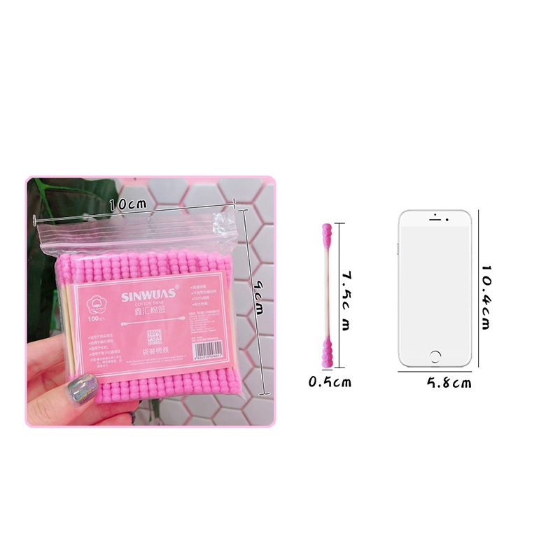 Sản phẩm (Hàng Mới Về) Set 100 Tăm Bông Hai Đầu Màu Hồng Làm Sạch Tai Mũi Và Tai Cho Nữ hiện đang được bán tại Shopee.