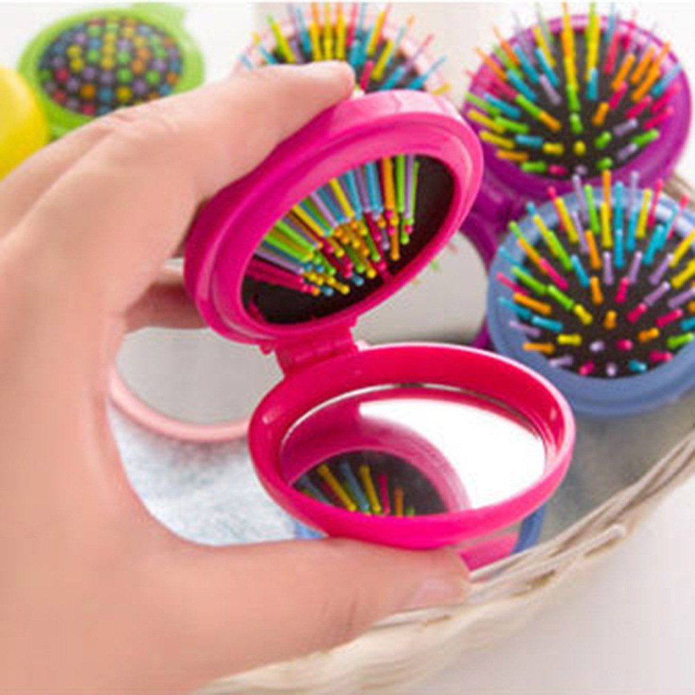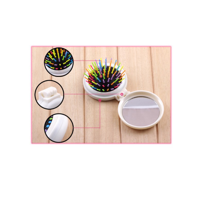 Thời gian giao hàng dự kiến cho sản phẩm này là từ 7-9 ngày Lược chải tóc mát xa mini dạng gập nhỏ gọn chống tính điện màu cầu vồng kèm gương tiện dụng khi du lịch cho nữ Nét đặc trưng - Thiết kế nhỏ gọn hợp thời trang -Lược chải tóc thiết kế dạng thu gọn, dễ dàng mang theo - Hiệu quả có thể xoa bóp cho da đầu - Thúc đẩy lưu thông máu hoàn hảo và giảm căng thẳng Thông tin sản phẩm: Chất liệu: Nhựa Kích thước gấp: khoảng. 6,5x6,5x2,8 cm Gói hàng bao gồm: 1 x Lược