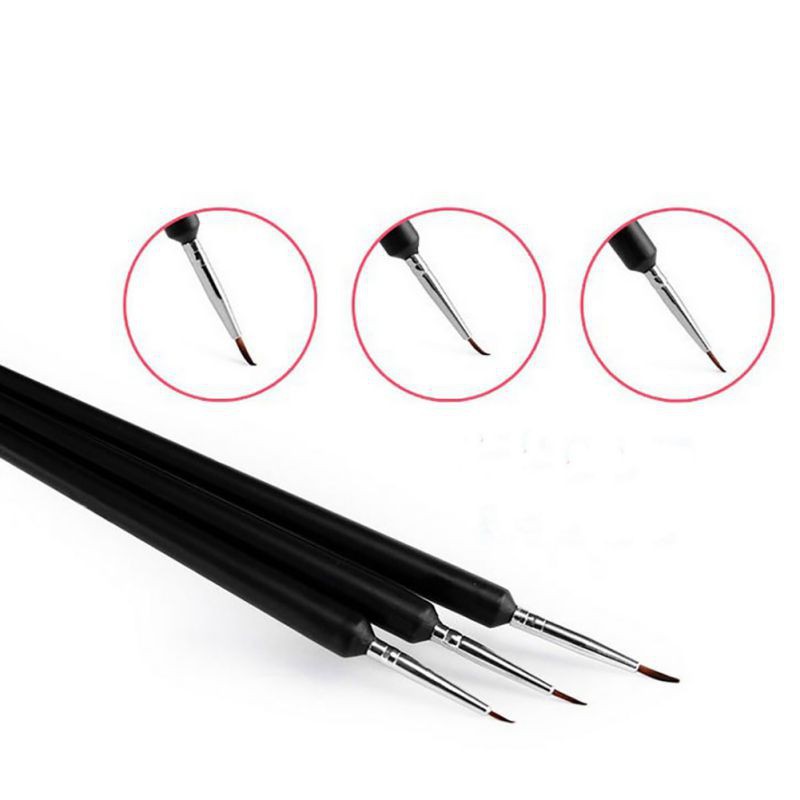 Features: 1.It is made of high quality material, durable enough for your daily using 2.Set of 3 nail art brushes in 3 different sizes 3.Enable you to create beautiful nail designs in seconds. 4.Build up your UV gel or acrylic nail false tips 5.You can draw any beautiful painting or 3D painting as you like 6.Special designed for finest detailing tasks like painting leaves and flower petals 7.Convenient to take, could DIY for your nail with different designs by this item, help to create your personal character! 8. Suitable for professional use or home use 9. A perfect tool set for love makeup lady Specifications: Condition:New Size:7.28 x 0.39inch/18.5 x 1 cm (L x Dia)approx 3 Bristles length:0.20inch/0.5cm,0.31inch/0.8cm,0.47inch/1.2cm Material:Natural animal hair, Plastic(Handle) Color:Black Package included:1x 3 Pcs Nail Art Brush Dotting Pen Set Black