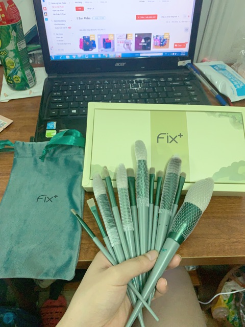 Sản phẩm Set Cọ Trang Điểm Fix 13 Món ( Xanh ) hiện đang được bán tại Shopee.