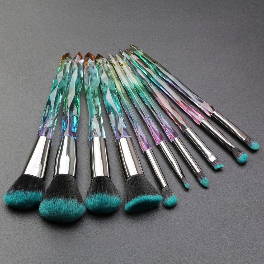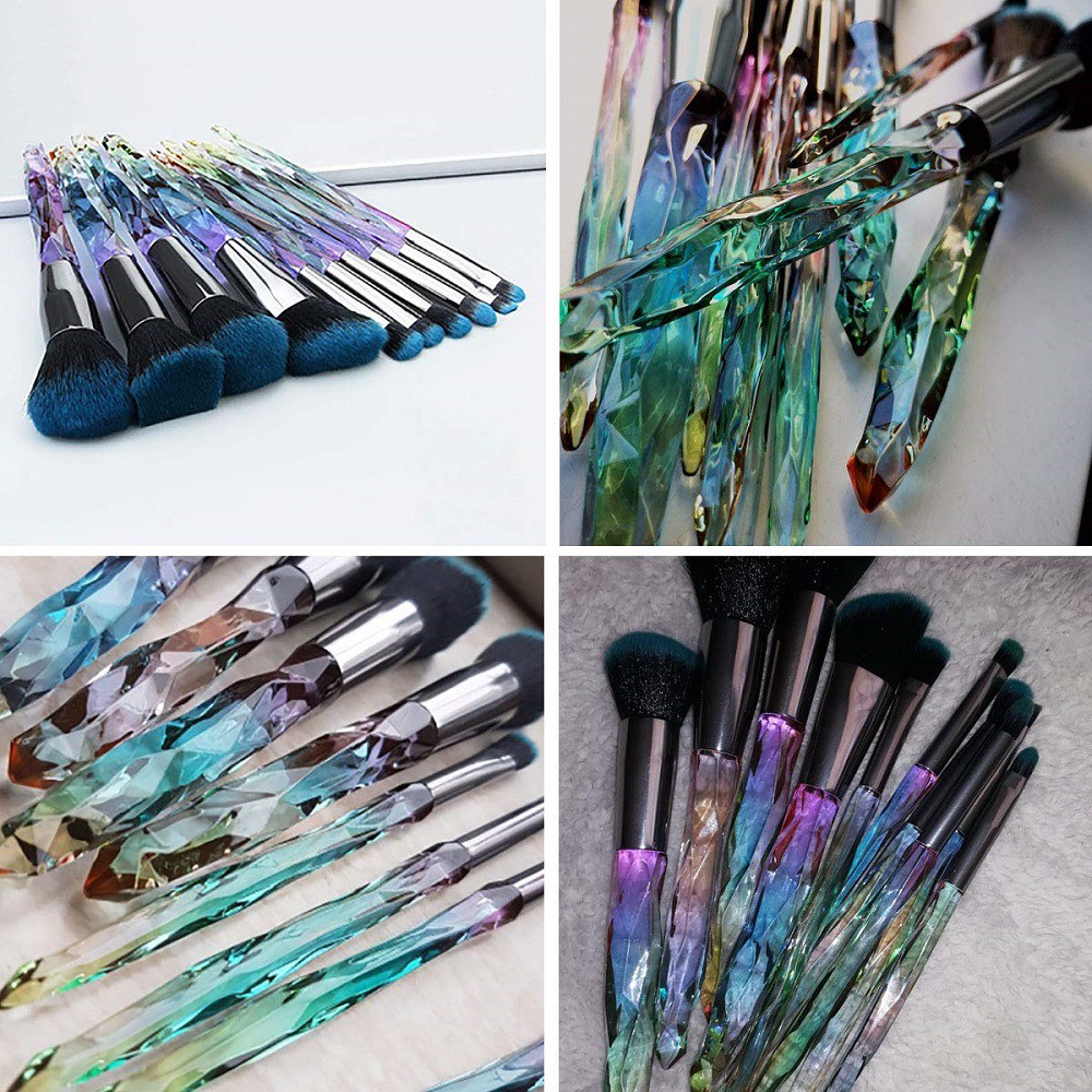 Sản phẩm Bộ 10 Cọ Trang Điểm Cán Trong Suốt Màu Gradient Lấp Lánh hiện đang được bán tại Shopee.