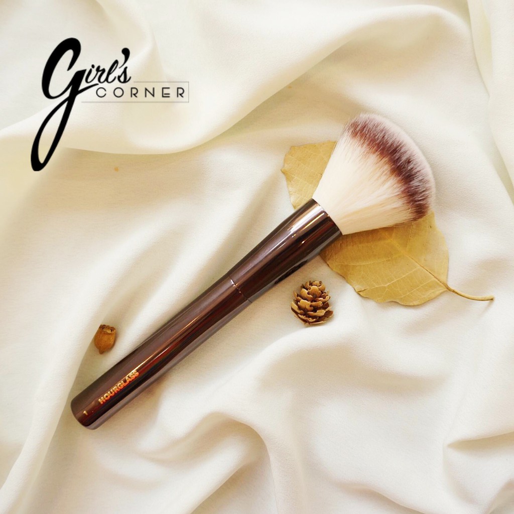 Cọ phủ Phấn Hourglass nằm trong bộ sưu tập cọ trang điểm của hãng, Hourglass được biết đến như một thương hiệu luxury về mỹ phẩm vậy nên các cọ trang điểm mà hãng cho ra đời cũng được dựa trên tiêu chí rất nghiêm ngặt về chất lượng, mẫu mã và công dụng: - Cọ được thiết kế với dạng bung xoè, được giới thiệu là giúp cho lớp phấn phủ được phủ đều ưu việt hơn, mỏng mịn nhưng vẫn giúp da trở nên đều màu, khô ráo hơn. - Lông cọ được làm từ lông nhân tạo, tuyển chọn nghiêm ngặt và sản xuất, lông cọ mềm mịn cao, thân thiện với môi trường (có thể phân huỷ sau 2 năm trong lòng đất), không gây kích ứng cho da kể cả da nhạy cảm nhất. - Cán cọ được làm từ kim loại chắc tay, không gỉ khi bị oxy hoá Khuyên dùng với các sản phẩm dạng bột, có thể dùng như một cọ má hồng