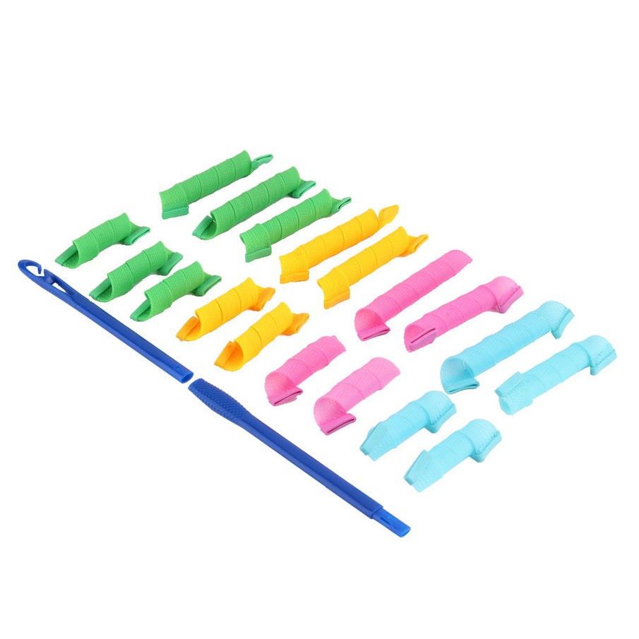 Features: Two sizes for your choice according to your hair length No chemical damage any more to your hair No harm to hair, easy operation Easy, quick and soft to create good curls Perfect for creating a gorgeous curl on and hair length Suitable for all types of hair Recyclable, can be used for many times Description: Brand: none Material: Plastic Suitable for: all types of hair Style: Magic Leverag Quantity: 18pcs Specifications: Material: Plastic Color: Multi-color Small Curlers Length: approx. 8.2cm Large Curlers Length: approx. 12cm Net Weight: 138g Package includes: 2 x Sticks 9 x Small size Curlers 9 x Large size Curlers