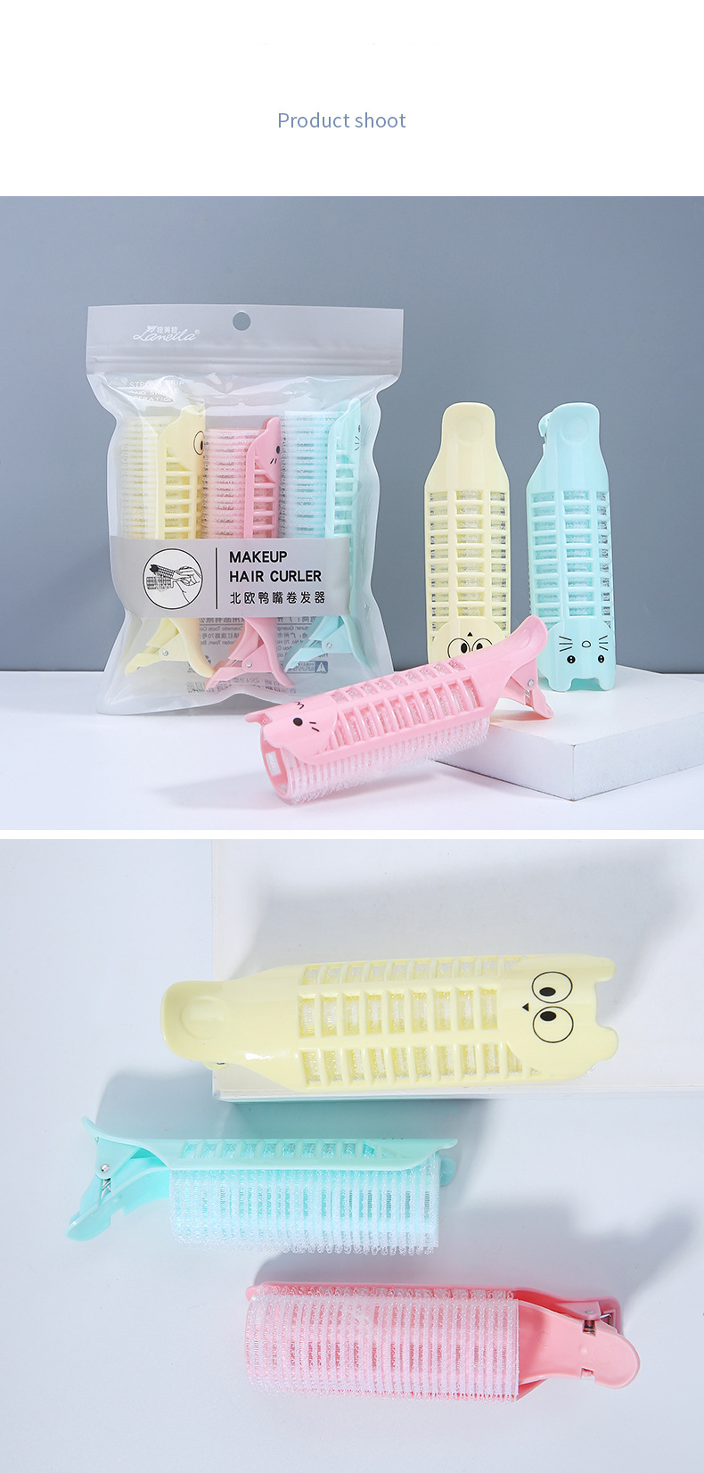 Quantity: 3 pcs / set Material: PP+ nylon Size: 14*19cm Features: simple operation, natural effect, long-lasting Description: Duckbill curling iron, create your own hairstyle. The curling iron has a long-lasting shape and does not fall off easily. Double-use roll clamp, no pulling feeling. Lightweight and durable, soft and hard to damage hair. Ventilated structure, with uniquely designed fine claws on the winding core, which can easily roll up the hair. With a net cover, the hair can be fixed. How to use: 1:First comb your hair and spray a little water. 2:Take off the net cover, roll up a proper amount of hair with the core, adjust the best position and buckle back the net cover to fix it. 3:Blow with warm and hot air for about 1-2 minutes. It is recommended to use hot and cold air alternately for easier shaping.