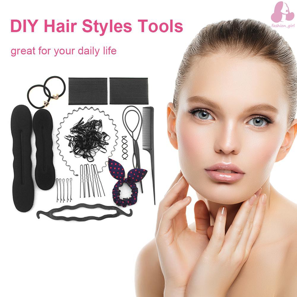 welcome to fashion-girl.Hair Styling Set Fashion Hair Styles DIY Tools Accessories Hair Modeling Hairdressing Tool Kit Simple & Fast Bun Shaper Hair Braiding Tool Features: Suitable for your daily hair styling or hair styling practice with dummy head. A complete set for hair styling, nice for beginners and advanced users. It makes doing hair easier and faster. Easy and convenient to use. Perfect for girls and women. Specifications: Type: Bun Shapers Material: Metal, ABS, Sponge Model: 1#, 2#, 4# (Optional) Package Size: Approx. 15 * 5 * 2cm / 5.91 * 1.97 * 0.79in Package Weight: Approx. 100g / 3.53oz Package List: 1 * Hair Styling Set