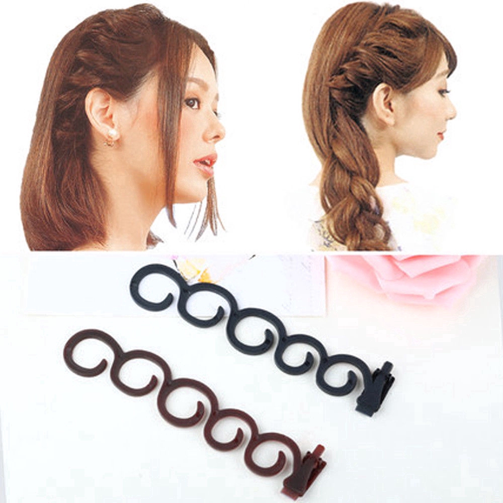 Feature: 100% Brand new. Lightweight and comfortable, and no pin needed. Never ever make any damage to your hair! Fast and easy to use for all ages,perfect for casual or elegant wear. DIY you hair at home. Use to create butterfly/Twist braids, Securely holds twists in place. Type:Hair Braiding Tool Material:Plastic Color:Black, Coffee Size:approx.13.5*2.5cm/5.11*0.98in(L*W) Package Included: 2PCS Hair Braided Styling Tool How to use: Secure the Braiding tool in hair using the clip Taking small sections of hair at a time - twist and tuck hair into the loops to secure Continue this step until you have achieved your desired look.