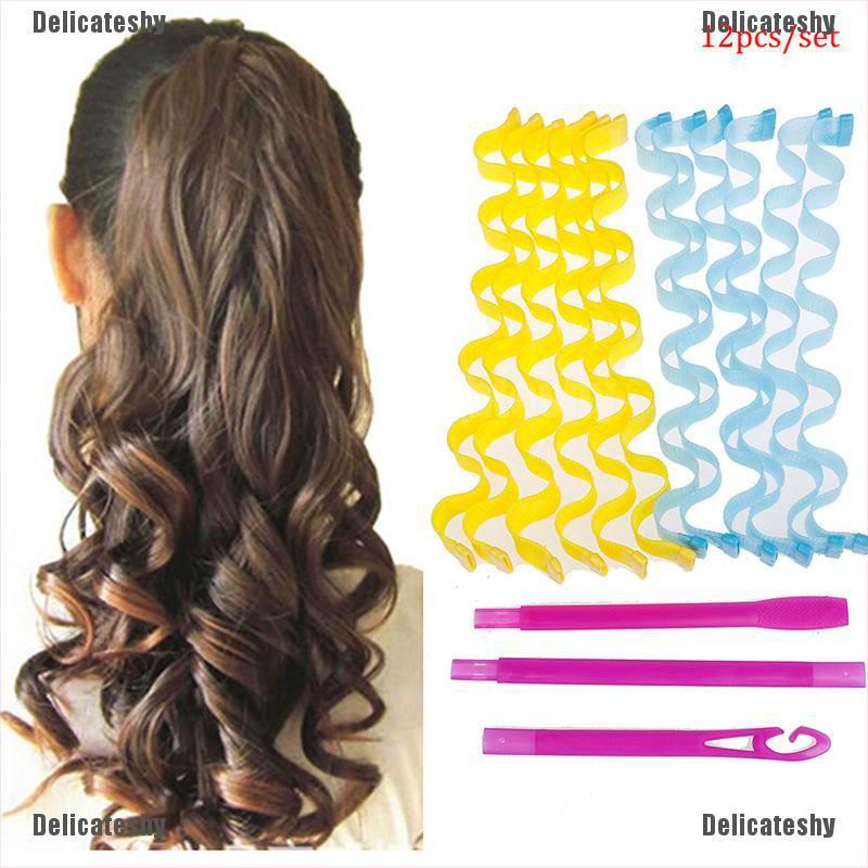 Welcome To Our Store Delicateshy, ---------------------- Feature: 100% Brand New and high quality Easy, quick and soft to create good curls Perfect for creating gorgeous curls Five sizes to choose from according to your hair length No harm to hair, easy operation Recyclable, can be used for many times Specifications: Size(After stretching): 25 (long) x2 (diameter) 30 (long) x2 (diameter) 45(long) x2 (diameter) 50(long) x2 (diameter) 65(long) x2 (diameter) Material: PET+PP+ resin Shape: Wave Applicable hair: Dry & wet medium hair Type: Hook & Loop Item Type: Hair roller Quantity: 12pcs How to Use? Shampoo and condition hair and towel dry. If you wish, apply mouse or styling products evenly through your hair to give extra hold to your curls. Assemble the wand. Insert Wand through slit at either end of the curlers. Hook onto a small section of hair. Pull stick out so hair goes into curlers. Blow dry hair. Perm time: 8-20 minutes. Enjoy your beautiful curls! Note: Transition: 1cm=10mm=0.39inch Please allow 1-2cm error due to manual measurement. pls make sure you do not mind before you bid. Due to the difference between different monitors, the picture may not reflect the actual color of the item. Thank you! Package include: 12pcs Magic Curlers 1pcs Hook
