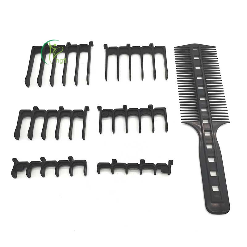 --ღWelcome to the hgfl beauty store, hoping to bring you beauty.ღ-- Decription: Features: -The product includes 1pcs main comb, 7pcs comb accessories and 1pcs instruction manual. -It can be used together and according to the instructions, so haircut is very convenient and simple. Good for both professional and home users. -Consistent length and angle. Makes your haircuts better, easier and faster. -Adjustable angles. Allows texture point cutting for a softer finishing look and longer lasting shape than clipper cuts. 5. 7 guides from 1/4in to 2.5in(0.6-6.4cm). Notice: -Actual color may be slightly different from the image due to different monitor and light effect. Please allow minor deviation due to manual measurement. Specification: Type: Comb Accessories Hair Cutting Tool Kit Material: Plastic Packaging: 1pcs main comb, 7pcs comb accessories and 1pcs instructions Product size: 24.2 x 11.5 x 2.5cm Included: 1 x main comb 7 x comb accessories 1 x instructions