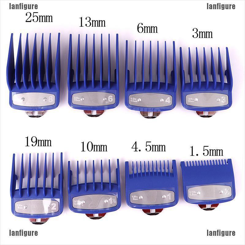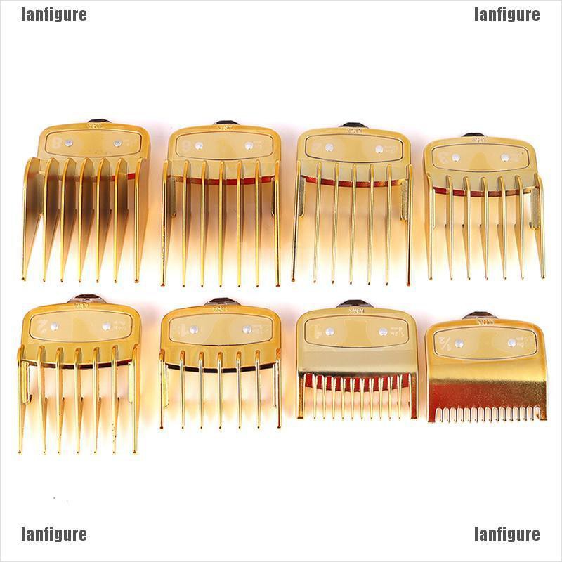 【LFMY】8Pcs/Set Hair Clipper Limit Comb Attachment Clipper Guide Comb Limit Comb SetDescription: Professional electric hair clipper limit comb. Made of high quality material, durable for a long time and easy to attach. Includes 8 sizes hair clipper guide combs, meets barber shavers' different needs. Necessary limit comb for salon haircutting and hairdressing activities. Features: -Universal limit comb for most hair clippers. -Available in eight sizes, you can control the length of your hair at will. -Moderate soft and hard, it is not easy to stab hair when trimming hair, and it is user-friendly. -The limit comb features a flexible rounded corner that does not tear the hair when you haircut it. -Suitable for professional salons or home use. Specifications: Type: Hair Clipper Limit Comb Material: Plastic + Metal Color: Gold, Blue, Black, Red Quantity: 8 Sizes Per Bag Item Size: Approx. 1.5mm; 3mm; 4.5mm; 6mm; 10mm; 13mm; 19mm; 25mm Package Includes: 8 Pcs/set * hair clipper limit comb Note: -Due to the different monitor and light effect, the actual color of the item might be slightly different from the color which is showed on the pictures. -Please forgive 1 cm/0.39"-3 cm/1.18" measuring deviation due to manual measurement.