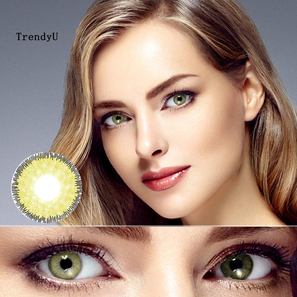 Under Supervision 1.High Quality 2.Comfortable and natural 3.Yearly Use(can wear one year) 4.Fashion color 5.The cosmetic contact lenses won't slide in your eyes. No foreign sense in eyes. 6.Need to be used within one year after opening Using Tips: -Wash and dry hands before handling contact lenses thoroughly -Use soap that is free of oils, lotions or perfumes -Dry hands with a lint-free towel -Use finger tips to handle contact lens (not fingernails or sharp objects like tweezers) Check lens that it is clean from depris and damage free before attempting to insert in your eye. Never put a damaged lens in your eye. This contact lenses is yearly use. Expiration time: 1 year Diameter:14.2mm Base Curve:8.5mm Diopter: No (Only for eye color) Material:HEMA Water content: 40% Use of time: 12 months Important: If the degree of myopia your two eyes are not the same, contact us after ordering. Package included: 2X Coloured Contact Lenses, 1 free cute case.