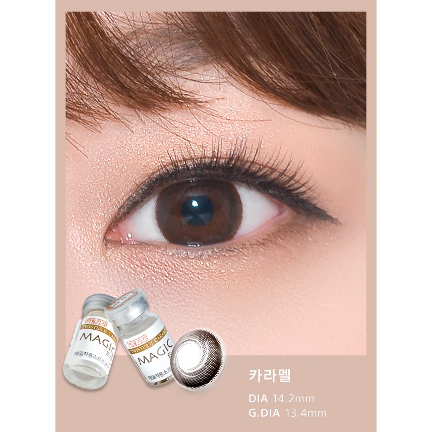 Sản phẩm Lens Mắt Cận 1 Năm Màu Nâu Đậm Twister Caramel, Kính Áp Tròng Nội Địa Hàn Cho Mắt Nhạy Cảm hiện đang được bán tại Shopee.