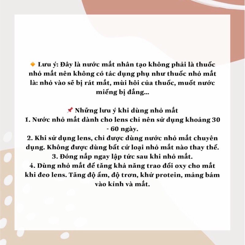 #hlensphukien #hlenskinhaptrong #nhomat #hlenskinhaptrong #hlensphukien #nhomatlens Nhỏ mắt chuyên dụng dành riêng cho kính áp tròng : - Hỗ trợ làm ẩm cung cấp độ ẩm cho mắt - Tăng cường khả năng trao đổi oxi cho mắt - Đẩy trôi bụi bẩn , diệt khuẩn - HDSD bằng Tiếng Việt ghi trên vỏ lens Dung tích :13ml HSD :3 tháng Cách sử dụng : -Trước trong và sau khi tháo lens tra nhỏ mắt ❌ TUYỆT ĐỐI KHÔNG SỬ DỤNG THUỐC NHỎ MẮT THƯỜNG