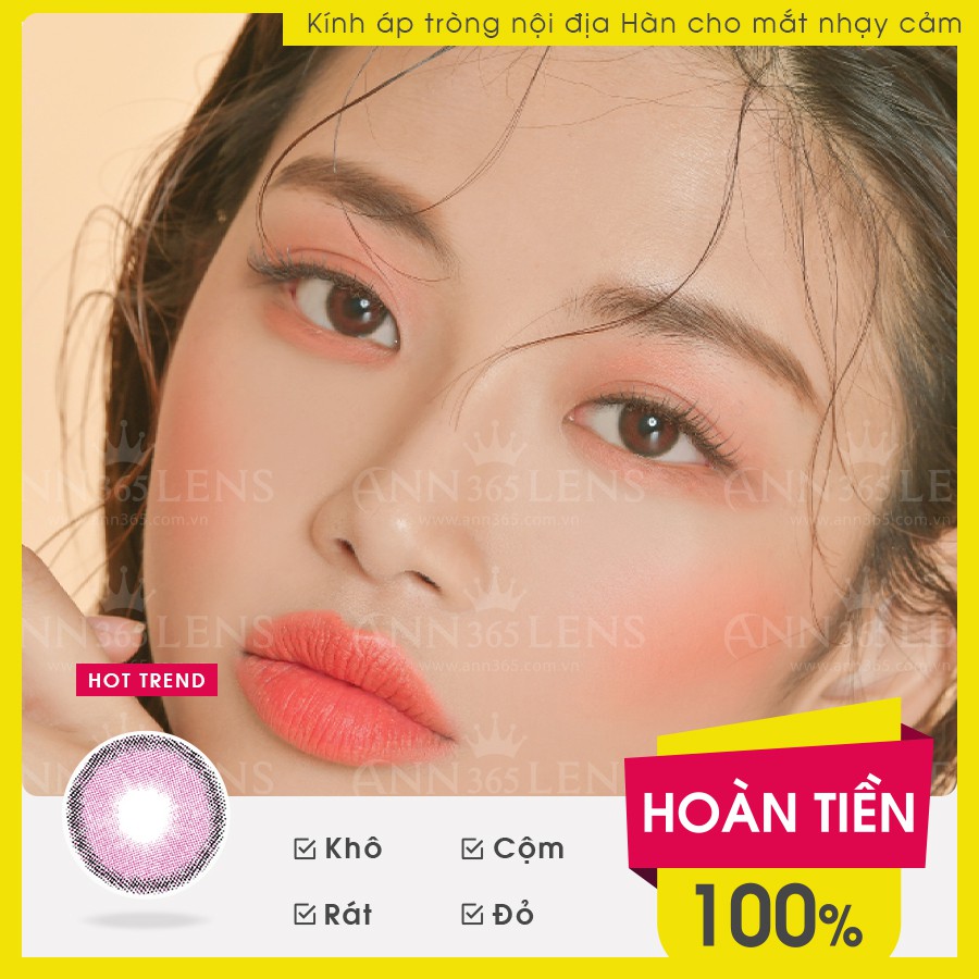 THÔNG TIN CHUNG VỀ KÍNH ÁP TRÒNG 1 THÁNG FUNNY ANN SWEET WINE - Màu Sắc: Vang Đỏ - Độ Cận: Từ 0.00 đến 6.00 - Độ Ẩm: 38% - Đường Kính: 14.0 mm - Độ Giãn Tròng: 13.0 mm - Chất Liệu: H.E.M.A - Số Lượng: 1 Hộp / 1 Cặp - Loại: 1 Tháng - Hạn Sử Dụng: 30 Ngày Tính Từ Khi Mở Nắp ------------------------------------------------------------------- CÓ THỂ BẠN CHƯA BIẾT NHỮNG NGUY HIỂM TIỀM ẨN KHI ĐEO KÍNH ÁP TRÒNG “DỎM” #1. Suy giảm thủy lực Kính áp tròng kém chất lượng là nguyên nhân khiến mắt phải điều tiết liên tục, cường độ mắt phải hoạt động nhiều hơn, gay căng thẳng cho mắt làm các tật về khúc xạ ngày càng tang. #2. Nhiễm trùng mắt Mắt rất nhạy cảm vì thế việc dùng kính áp tròng phải đảm bảo vệ sinh 100%. Tuy nhiên với kính trôi nổi trên thị trường hiện nay thì nhiễm trùng mắt rất dễ xảy ra. Từ chất lượng kính đến dung dịch ngâm kính đều có thể không đảm bảo an toàn. #3. Mắt thiếu Oxy 85% lượng oxy cho mắt được cung cấp và trao đổi qua giác mạc. Tuy nhiên kính áp tròng kém chất lượng lại có độ cong không phù hợp, kính áp sát trực tiếp vào bề mặt mắt làm giảm đáng kể lượng oxy, suy yếu cơ chế diệt khuẩn khiến mắt bị khô. #4. Viên loét giác mạc Cá sắc tố màu của kính áp tròng trôi nổi rất kém chất lượng, không được kiểm định nên sẽ thâm nhập vào mắt làm cho mắt bị dị ứng và gây nấm, nguy cơ bị loét kết mạc – giác mạc tăng lên. #5. Mù lòa Bề mặt kính áp tròng nếu không đảm bảo an toàn sẽ chứa nhiều vi khuẩn, khi đeo kính vào mắt sẽ làm cho vi khuẩn xâm nhập gây viêm nhiễm. Sử dụng kính áp tròng kém chất lượng lâu dài sẽ dẫn đến mù lòa. ★ Ann365 Lens rất đề cao việc bảo vệ sức khỏe đôi mắt người tiêu dùng với các tính năng: - Công nghệ UV Blocking, giảm thiểu lượng bức xạ mặt trời chiếu đến mắt. - Chất liệu màu an toàn được FDA (Hoa Kỳ) kiểm định. - Chất liệu Silicone Hydrogel tiên tiến nhất thế giới giúp mắt thẩm thấu oxy và giữ ẩm tốt để mắt thoải mái đeo lens trong suốt 12h mà không khô, rát hay đỏ mắt. ★ Vậy sản phẩm từ ANN365 LENS như thế nào? - Funny Ann là bộ sưu tập mới nhất cho hè 2019 với sắc tím ngọt ngào, sắc xám huyền bí và sắc nâu lạnh cổ điển . Sweet Wine với đỏ rượu quyến rũ lạ mắt, vô cùng tự nhiên lại không khiến bạn bị “chìm”. - Funny Ann có DIA 14.0mm; G.DIA 13.0mm; chất liệu H.E.M.A ngậm nước 38%, kết hợp đường viền mảnh mai và vân lens rõ nét giúp các bạn gái tạo sự khác biệt cho đôi mắt của mình. ★ CAM KẾT CỦA ANN365 LENS VỚI KHÁCH HÀNG★ Tự tin là thương hiệu kính áp tròng nội địa Hàn Quốc dành cho mắt nhạy cảm, ANN365 LENS cam kết sẽ hoàn tiền 100% cho khách hàng khi có hiện tượng đỏ, cộm, khô hay rát mắt khi đeo sản phẩm trong suốt thời gian sử dụng #kinhaptrong #kínháptròng #lensmắt #lensđẹp #lens #áp_tròng #Lenshàn #lensgiantrong #lenscodo #korea #hànquốc