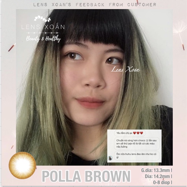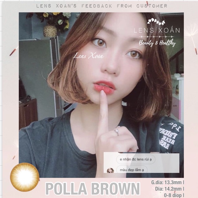 CÁC ĐỘ CÓ SẴN: 1-1,5-2-2,5-3(1)-3,5-4-4,5-5(1)-5,5 POLLA BROWN ✨ Nâu vàng trong vắt sáng và tôn da nhất trong 3 tone của em Polla này nhá ✨ Tone nâu vàng lên mắt làm thay hẳn màu mắt nhưng vẫn hoà vào vs màu đen của mắt khiến mắt sẽ hoà dần đen->nâu choco-> nâu sáng nhẹ toả ra ngoài nha các cậu ✨ Khá nhiều review khen em này đeo thật hơn mấy dòng choco vì nhìn ánh nâu trong chứ ko sậm hẳn xuống nên khá phù hợp với làn da Châu Á nha ✨ Mặc dù vân lens nhìn khá vàng nhưng khi lên mắt hoà với màu nâu đen của mắt thì lại khá quyện với nhau nhìn thật mà tự nhiên nhưng k kém phần tây nhẹ nha💓 ✨ Các bạn kéo xem review khách mình đeo nha, không make lẫn make đều hợp luôn ạ 💓 #aptrong14 #olensbrown #olensprenium #brownlensxoan #sexybrownlensxoan #naturalbrownlensxoan #pollalens #pollabrown 〽️ Thông tin lens: POLLA BROWN G.dia: 13.3mm | Dia: 14.2mm Độ: 0-8 diop( cách 0.25 diop) ❌Hiện tại bên mình có sẵn 0-6 diop( cách 0.5 diop) cho chị em nào cần gấp nha Các độ khác vui lòng order 10-15 ngày giúp mình ạ ❌ CÓ BÁN CẬN LỆCH, ko tăng giá. Giá: 350k-> 210k/ đôi ----------------------------- GIÁ COMBO ĐI KÈM( hỗ trợ giá tốt hơn khi mua lens kèm phụ kiện) - Combo 1: Lens + 1 phụ kiện đi kèm= 250k - Combo 2 : Lens + 2 phụ kiện đi kèm= 290k - Combo 3: Lens + 3 phụ kiện đi kèm= 330k Phụ kiện đi kèm: - Ngâm bé 120ml - Nhỏ mắt 50ml - Hộp dụng cụ đựng lens có gương ----------------------------- LINK SHOPEE( SHIP COD+ FREESHIP BILL TRÊN 200k):