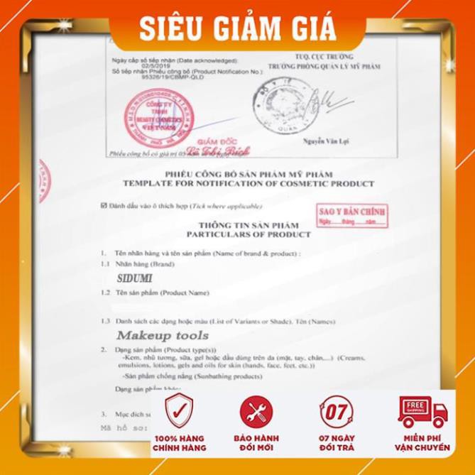 ✅Chuỗi cửa hàng mỹ phẩm lớn nhất miền Bắc. ✅Uy tín đã được đảm bảo qua hàng vạn đơn hàng trên khắp cả nước. ✅Cam kết hàng chính hãng loại 1 (Đền bù 200% nếu phát hiện hàng giả, hàng nhái). - Bảo hành 12 tháng - Lỗi 1 đổi 1 (Freeship đổi trả toàn quốc) ✅Tuyển sỉ và CTV toàn quốc, chiết khấu cực cao. Hàng luôn có sẵn đầy kho, gọi là ship ngay! ✅Giao hàng tận nơi, nhận và xem hàng, ưng ý thì mới thanh toán. Nhanh chóng, uy tín, chất lượng. ✅Cam kết sản phẩm giống như hình ảnh và mô tả. ✅Hoàn tiền 100% nếu khách hàng không hài lòng về sản phẩm. ✅Địa chỉ chính: Cơ sở 1: A26TT11, KDT văn quán, Hà đông, Hà nội (DT: 0387.80.80.80). Cơ sở 2: Số 74, Đường bạch đằng, Hải châu, Đà nẵng (DT: 0332.929.818). Cơ sở 3:Tầng 3 tòa nhà Landmark 81, KDT Vinhomes Central Park, Quận Bình Thạnh, TP.HCM (DT:0931.350.503). ***THÔNG TIN SẢN PHẨM*** Thương hiệu: Sidumi Xuất xứ: Hàn Quốc Mã sản phẩm: SDM K121 Quy cách đóng gói: 1 Cái/túi Số giấy phép lưu hành của bộ y tế: 25569/17/CBMP-QLD Sản phẩm được nhập khẩu và phân phối bởi: Công ty Beauty Cosmetics Việt Nam. ======ĐẶC ĐIỂM NỔI BẬT====== * Đây là loại kẹp mi tốt nhất trong các dòng kẹp mi hàn quốc vì rất nhẹ nhàng, không làm gẫy mi, giúp mi cong đều và rất dễ cong, không phải kẹp đi kẹp lại. * Thiết kế bẹt phù hợp với mắt Châu Á, ôm đều sát mí mắt giúp mi cong từ đầu mắt đến đuôi mắt chứ không như nhiều loại cong mỗi ở giữa mắt. * Sử dụng kẹp mi sẽ giúp mi cong nhanh chóng từ mọi góc cạnh, không phải kẹp lại nhiều lần, mi sẽ cong tự nhiên và giữ nếp được lâu. * Viền cong của kẹp mi được đệm 1 lớp cao su non giúp bạn thao tác thoải mái lực mà không sợ bị gãy mi. * Cốt kẹp mi được thiết kế thông minh linh hoạt giúp phân phối lực 1 cách hợp lý nhất. * Vòng ôm mi được thiết kế dành cho người châu á nên giúp bạn thao tác dễ dàng, kể cả những người không hay sử dụng. * Với kẹp mi này thì bạn thoải mái tự tạo cho mình đôi lông mi cong đẹp quyến rũ ngay tại nhà mà không cần đến tiệm hay sự giúp đỡ của người khác. * Với thiết kế tay cầm gỗ vân chắc chắn, đẹp sang trọng. * Cách sử dụng: Mở kẹp mi và giữ lông mi trong vài giây tại chỗ, mỗi lần kẹp khoảng 3 vị trí: chân mi, thân mi, ngọn mi để mi cong tự nhiên. *** Bạn Lưu ý giúp shop nha: - Quý khách vui lòng đọc kỹ thông tin sản phẩm rồi quyết định mua hàng, chứ đừng đặt cho vui hoặc từ chối khi đã mua hàng, tội nghiệp shop và các bạn giao hàng lắm ạ 😢💞👄 - Chú ý Shopee hỗ trợ tối đa 35k tiền ship ạ, các bạn lấy mã voucher freeship theo video hướng dẫn trên Youtube nha. - Khi đặt hàng Quý khách vui lòng ghi chú vào đơn hàng khi cần có thêm thông tin như: màu sắc, số, thời gian Quý khách có thể nhận hàng,… - Quý khách nhớ đặt hàng trên 150k để áp dụng chương trình miễn phí vận chuyển của shopee nha. >>> Bạn có thể tham khảo thêm sản phẩm khác Tại đây: #bấm_mi #bấm_mi_nhật #bấm_mi_nhựa #bấm_mi_shiseido #bấm_mi_shu #bấm_mi_shu_uemura #kẹp_mi_shu #nhấn_mí_tự_nhiên #kẹp_mi_shiseido #kẹp_mi_vacosi #kẹp_bấm_mi_the_face_shop #kẹp_mi_tốt #k