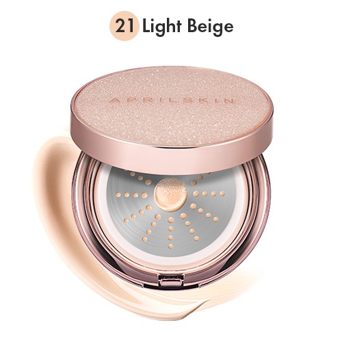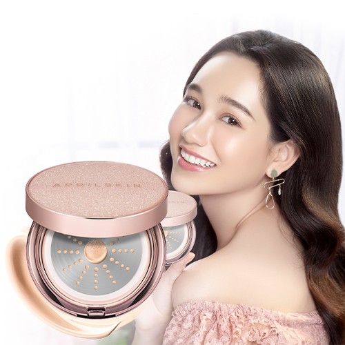 Phấn Nước Aprilskin Magic Essence Mist Cushion SPF50/PA++++ 13g - Thương hiệu: April Skin - Xuất xứ: Hàn Quốc Phấn Nước kinh điển khiến phái đẹp HÀN QUỐC mê mẩn và đắm say “AprilSkin Magic Essence Mist Cushion. Điểm ăn tiền nhất của dòng phấn nước này chính là khoác trên mình lớp áo nhũ màu ROSE GOLD siêu chanh xả . Với màu áo này, sản phẩm vừa tôn lên sự sang trọng cho thấy hãng rất tâm huyết với dòng cushion này và quá hợp với mùa lễ hội cuối năm rồi. Em này kế thừa toàn bộ những ưu điểm về phấn nước mà bạn mong muốn, mang đến lớp nền chuẩn mịn hoàn hảo nhất và nhanh nhất có thể. Điều này cũng cho thấy em ấy hoàn toàn xứng đáng có mặt trong túi xách của các tín đồ để giúp bạn làm đẹp “mọi lúc mọi nơi”. Sản phẩm giúp bạn mang đến lớp nền mỏng mịn tự nhiên nhưng vẫn hoàn toàn yên tâm với khả năng che phủ mọi khuyết điểm trên da. Phá vỡ mọi giới hạn về cushion trước đó mà ai cũng đã 1 lần nghĩ rằng: Cushion quá mỏng, quá nhẹ và chẳng thể che phủ được khuyết điểm trên da. Đấy, ý nghĩ đó sẽ biến mất trong 1 phút 30s khi cầm sản phẩm trên tay. >KHẢ NĂNG VƯỢT TRỘI CẦN ĐƯỢC NHẮC ĐẾN LÀ… Làn da sáng mịn khoẻ đẹp nhưng lại mỏng hơn bất kỳ loại cushion nào khác là do: Tinh chất Essence dưỡng ẩm săn chắc được tạo nên từ chiết xuất nho biển, được gọi là nho cấp ẩm của biển thông qua Essence Guard Da mặt trở nên mềm mịn và trắng sáng hơn nhờ chiết xuất ngọc trai hồng cấp AAA: Cấp càng cao thì ánh hồng của ngọc trai hồng càng giúp cho da trắng sáng và có sức sống hơn Bổ sung chiết xuất từ 4 loại hoa giúp cấp ẩm, mang đến làn da ẩm mịn và rạng rỡ suốt ngày dài. Ngoài vai trò là sản phẩm tạo nền hoàn hảo được bổ sung thành phần dưỡng ẩm. Sản phẩm còn được kết hợp với chỉ số SPF 50 giúp bảo vệ da trước tác hại từ môi trường và tia cực tím trong nhiều giờ liền. Dù mới được ra mắt nhưng sản phẩm đã chiếm trọn tình cảm của nhiều tín đồ. Thậm chí, chỉ cần dặm 1 lần là đã dễ dàng nhận ra làn da sẽ mướt mịn và khỏe khoắn hơn dù có đang trang điểm nhé.