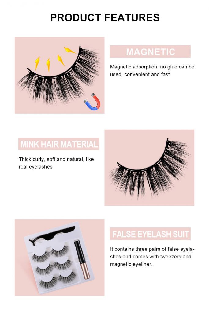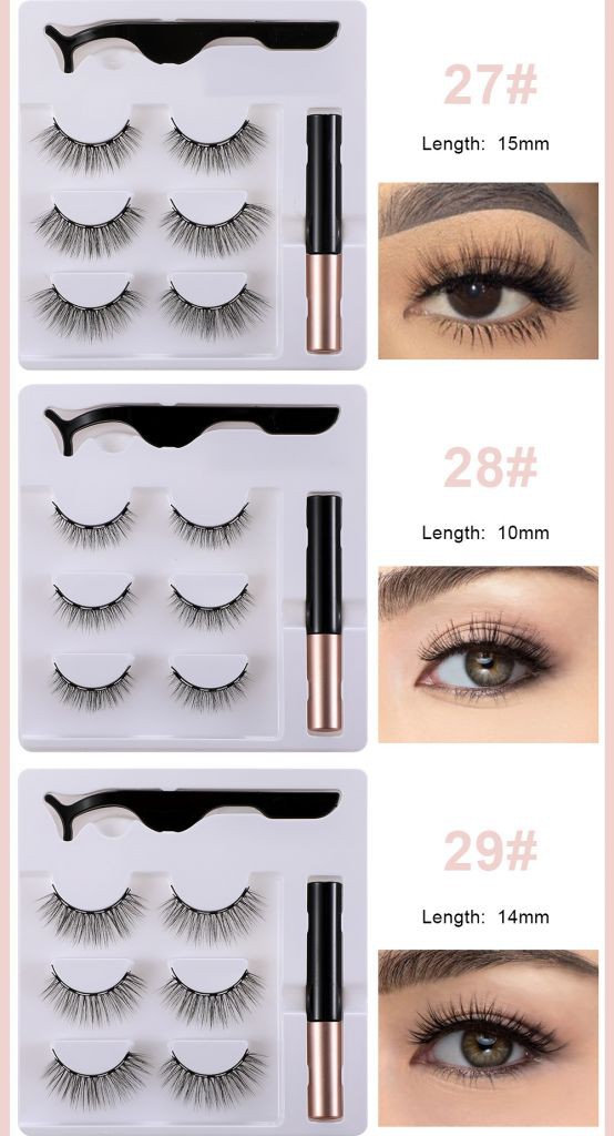 Package Included: 3 pairs * magnetic false eyelashes 1 * eyelash tweezers 1 * Magnetic Eyeliner Specifications: Applicable people: General Skin Type: General Applicable occasions: universal Product features: beauty makeup black technology, quantum magnetic false eyelashes, magnetic absorption, no glue and no harm, firm and no makeup, natural and realistic, free to release the electric eye light. Description: The eyeliner has a fine and smooth texture and is naturally beautiful. It can be used in one liquid and dual-purpose, which can effectively absorb the magnet eyelashes, and can also be used alone as an eyeliner for makeup. No eyelash glue required, easy to use. It remains intact throughout the day, and it is easy to remove and reposition it. Makeup quickly, easier to wear and adjust the angle. Adopt 5 magnetic process, the adsorption is firmer. Waterproof and sweatproof, long-lasting makeup without smudging. how to use: 1. Apply magnetic eyeliner. 2. Wait 3-4 minutes for the eyeliner to air dry. 3. Wear eyelashes in the right position. 4. Slightly adjusted and successfully worn. Notes: Due to the difference between different monitors, the pictures may not reflect the actual color of the item. Compare the detail sizes with yours, please allow 1-3cm error, due to manual measurement. Please leaving a message before you give the bad feedback, if the products have some problems. Thanks for your understandings.