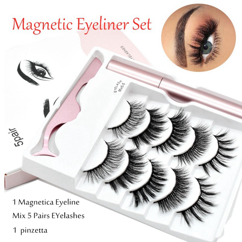 Sản phẩm (Hàng Mới Về) Set 5 Cặp Lông Mi Giả Từ Tính Tự Nhiên Kèm Bút Kẻ Mắt Và Nhíp hiện đang được bán tại Shopee.