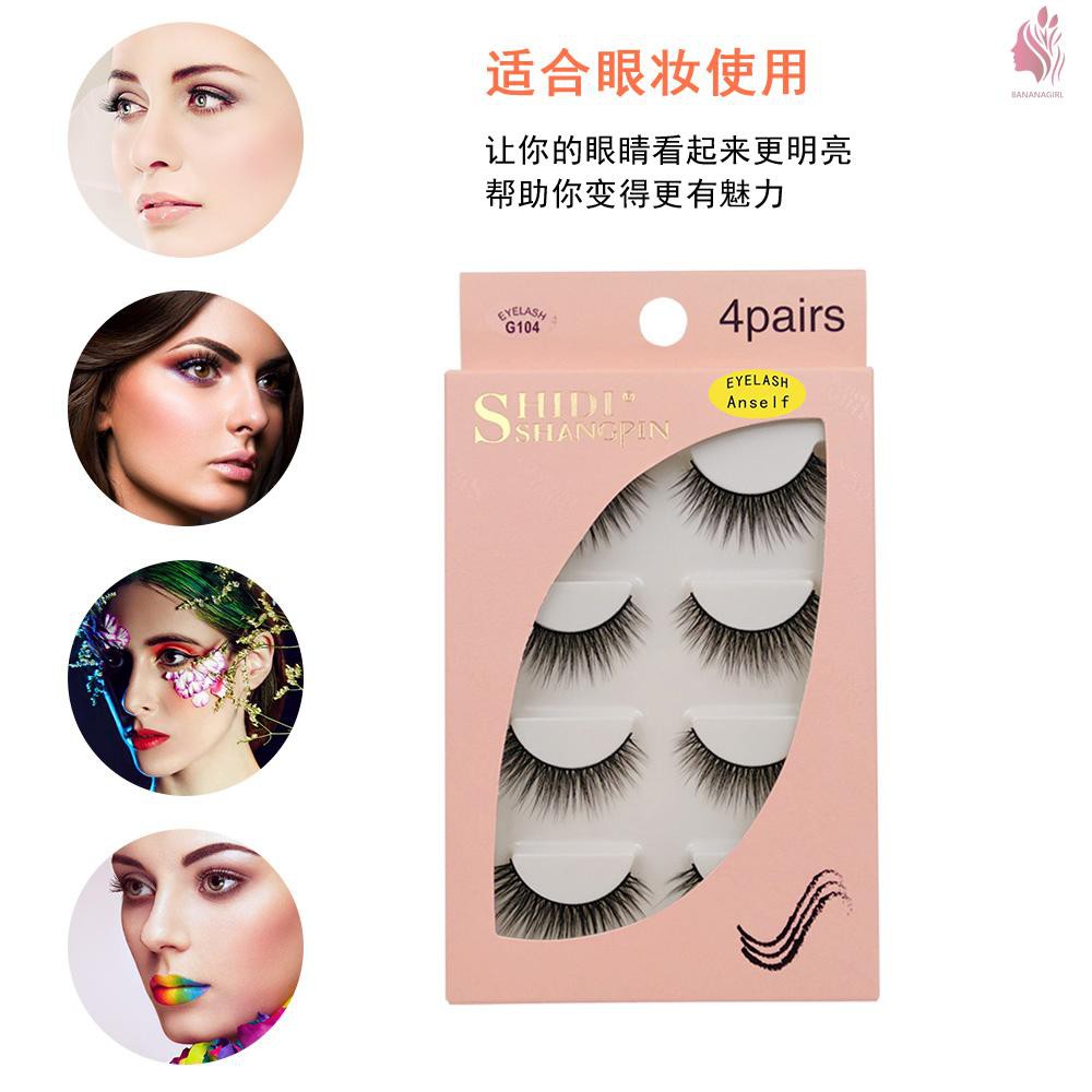 ♥welcome to bananagirl♥.Anself SHIDISHANGPIN 4 Pairs 3D Fake Eyelashes False Eyelashes for Eye Makeup Natural Long Thick Lashes Description: Eye makeup is vital for the whole makeup. If you dress your eyes in a proper way, you will be more charming and attractive. Believe it or not, our false eyelashes can not only give your eyelashes extension, but also making your eye makeup natural and beautiful. Features: Compared with other clunky false lashes, our 3D false lashes are made of top grade fiber, just as soft and light-weight as your natural lashes. 4 Pairs of false eyelashes are in the same styles, perfect for different occasions like party, dating, wedding, travel, etc. Great for eye makeup use, making your eyes look bigger and brighter, helping you to be more attractive and charming. It can be trimmed to the desirable size and the fake eyelashes are reusable if being used and removed properly. Easy to use, it has a thick but flexible band, supper easy to wear and harmless your eyes. 6 Different types of eyelashes for selection, you will find your favorite one here. Specification: Brand Name: Anself Type: False Eyelashes Model: 1# G104; 2# G105; 3# G106; 4# G107; 5# G108; 6# G109 (Optional) Material: Top Grade Fiber Hair Color: Black Quantity: 4 Pairs Length Of Eyelashes: 1#: Approx. 1.3cm / 0.51in 2#: Approx. 1.4cm / 0.55in 3#: Approx. 1.6cm / 0.63in 4#: Approx. 1.3cm / 0.51in 5#: Approx. 1.2cm / 0.47in 6#: Approx. 1.3cm / 0.51in Package Size: Approx. 16.5 * 9.4 * 1.2cm / 6.5 * 3.7 * 0.47in Package Weight: Approx. 20g / 0.71oz Note: This type of eyelashes need to be used with glue(not included). Package List: 4 Pairs * False Eyelashes
