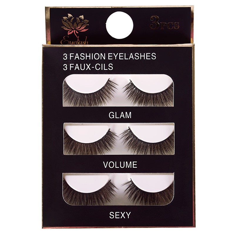 Sản phẩm (Hàng Mới Về) Bộ 3 Cặp Lông Mi Giả Dày Màu Đen hiện đang được bán tại Shopee.